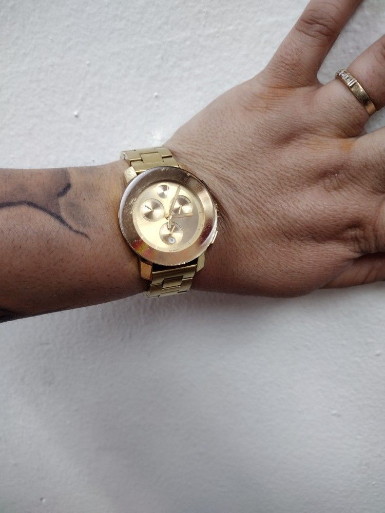 This is a amazing chronograph Movado bold. Stainless steel. This watch keeps great time.