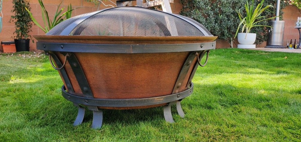 Bay Whitlock 34 in. W Antique Bronze Cast Iron Wood Outdoor Fire Pit