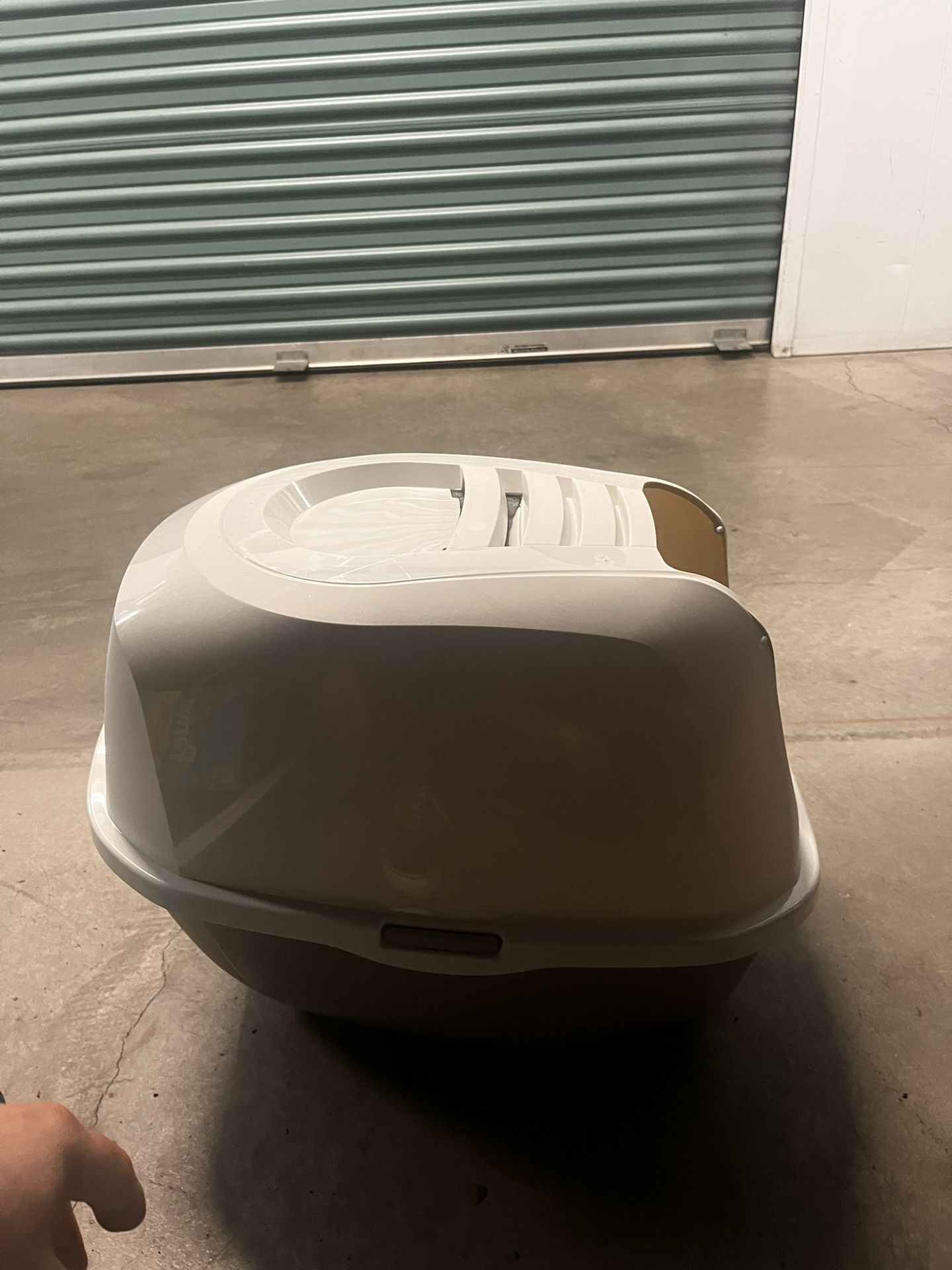 Life Cat Cove Litter Pan House. Used but in great condition. For those cats that need privacy to go or you just don't want to see go.Has odor filter in vent and an easy swing door for pet access.Great to keep odor and litter mess contained.