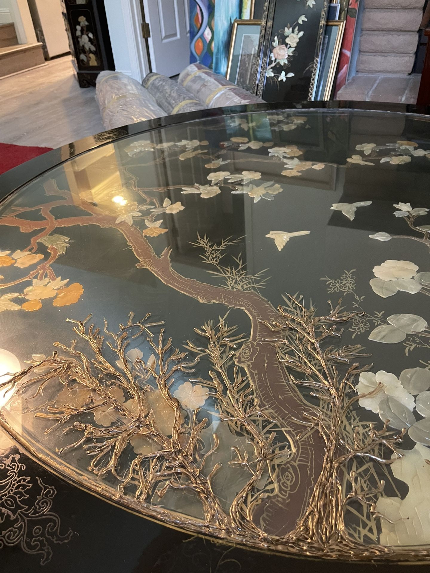 Japanese Chabudai vintage jade, mother-of-pearl inlay large low table/coffee table