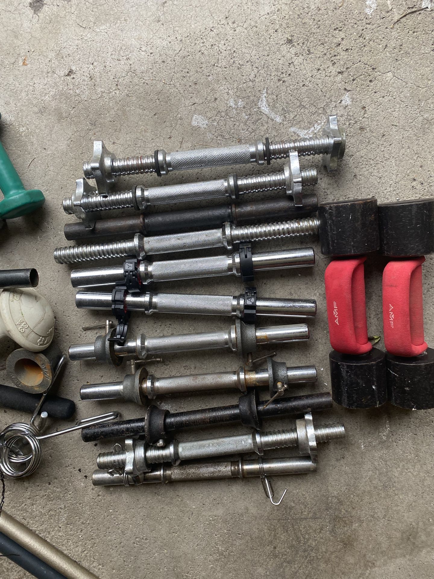 Dumbell handles standard bar one inch and some weight with clips as showing in the picture .