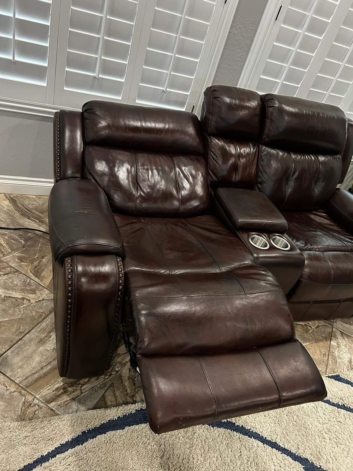 Fully reclining genuine leather sofa. No wear and tear. Pet free house. It’s a 5 seater sofa 2 and 3 seat sectional.