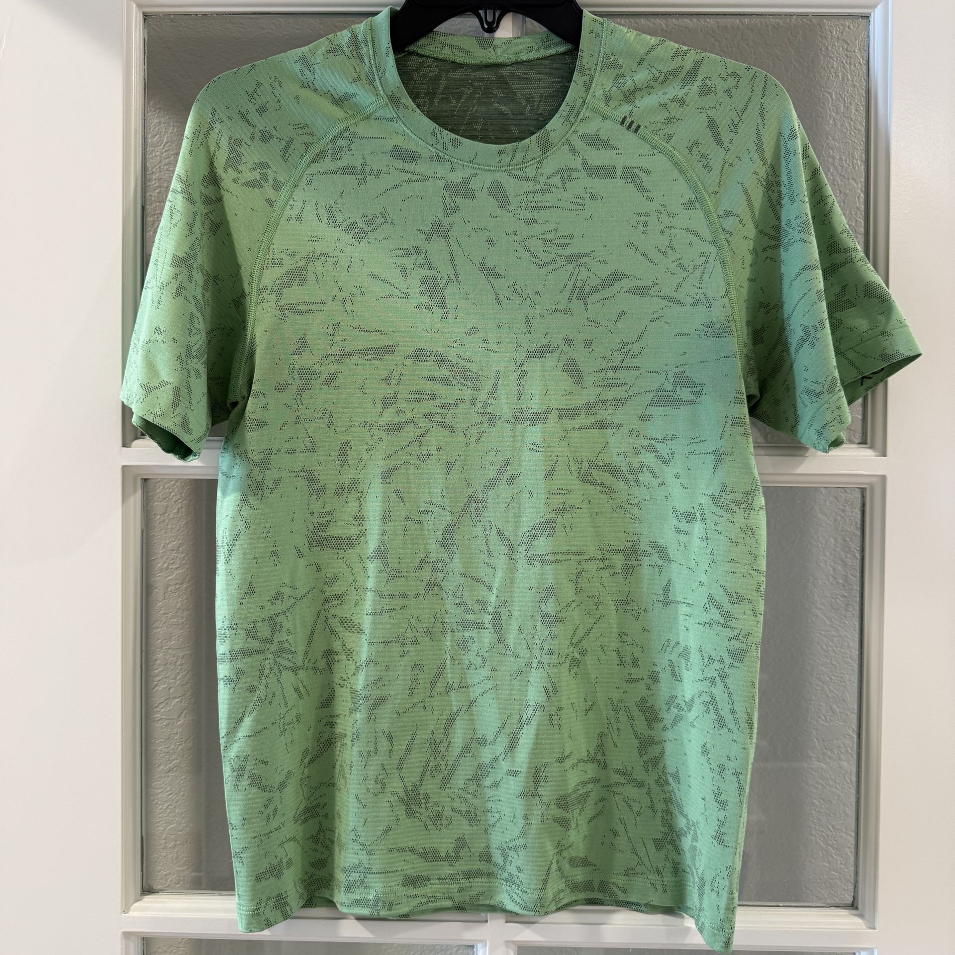 Lululemon Men’s Metal Vent Tech 2.0 Neon Green Short Sleeve Shirt Size XS, official color is Block Floral Graphite Grey/Scream Green Light. True men’s size XS. Very nice vibrant color and pattern. Like new, only worn a few times. No damages, some light discoloration as photographed under armpit area but nothing noticeable.