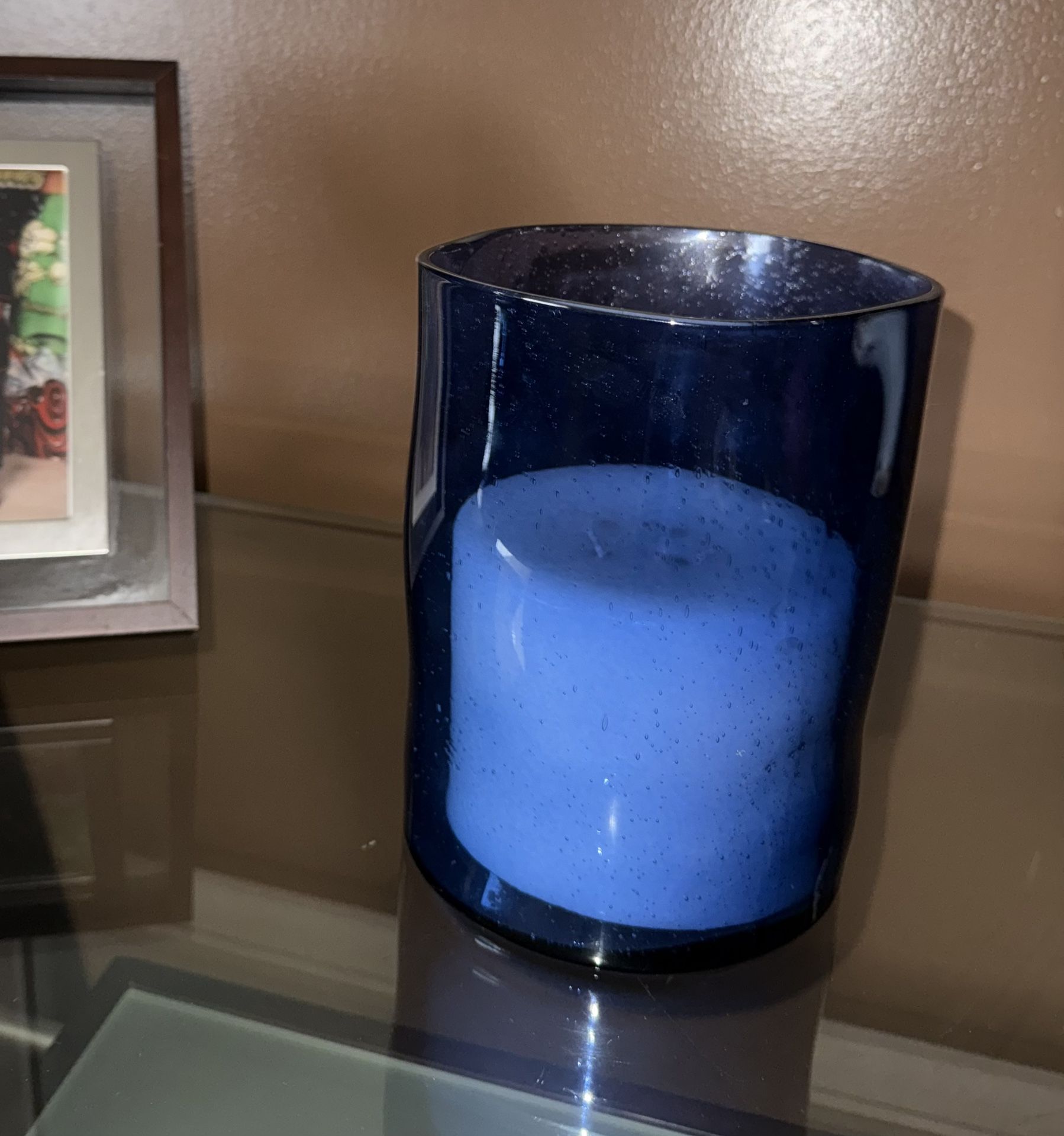 Blue vase/candle holder, new open box. Candle was just set in for photo