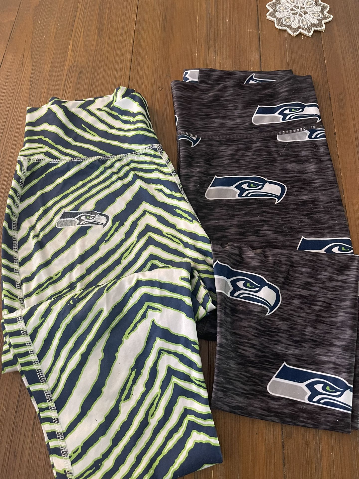 2 pair women’s full length leggings- activewear material These are size L Smoke free home