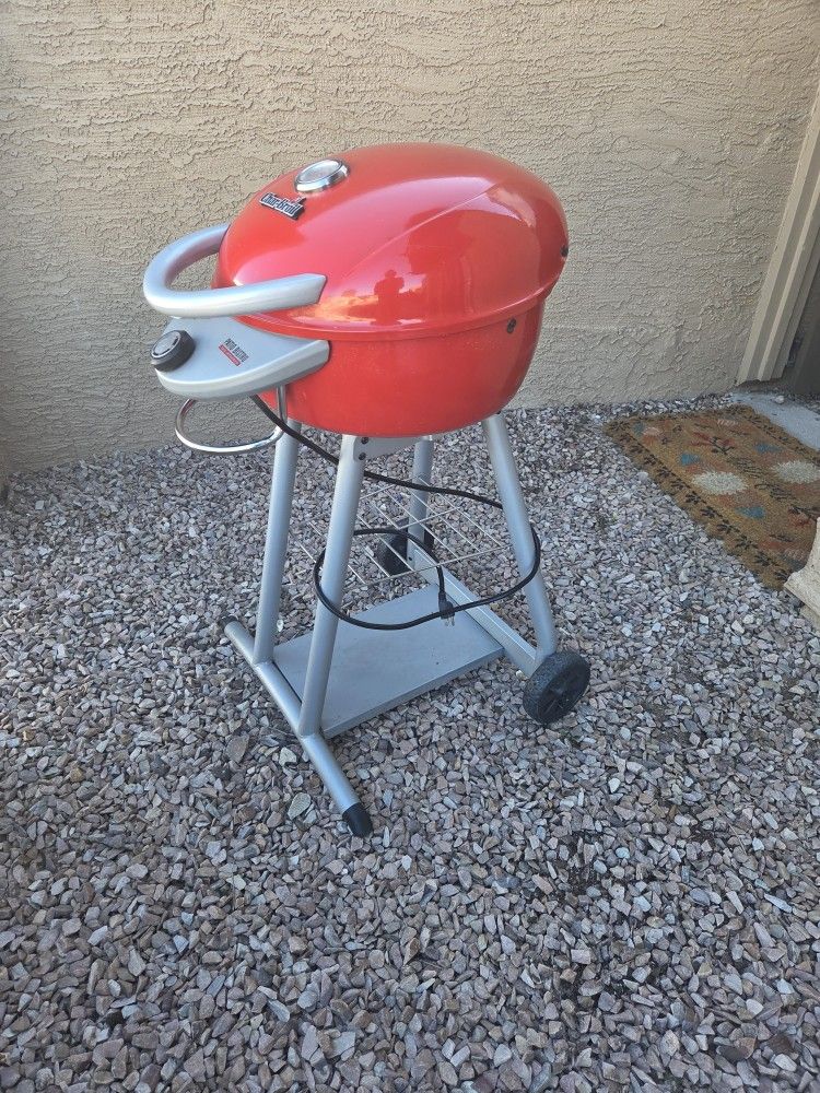 Electric grill, about 3 feet high and 2 feet wide. Works great. From ACE Hardware.