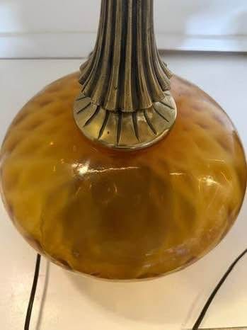 Set of 2 vintage mid-century modern amber glass brass/bronze table lamps.