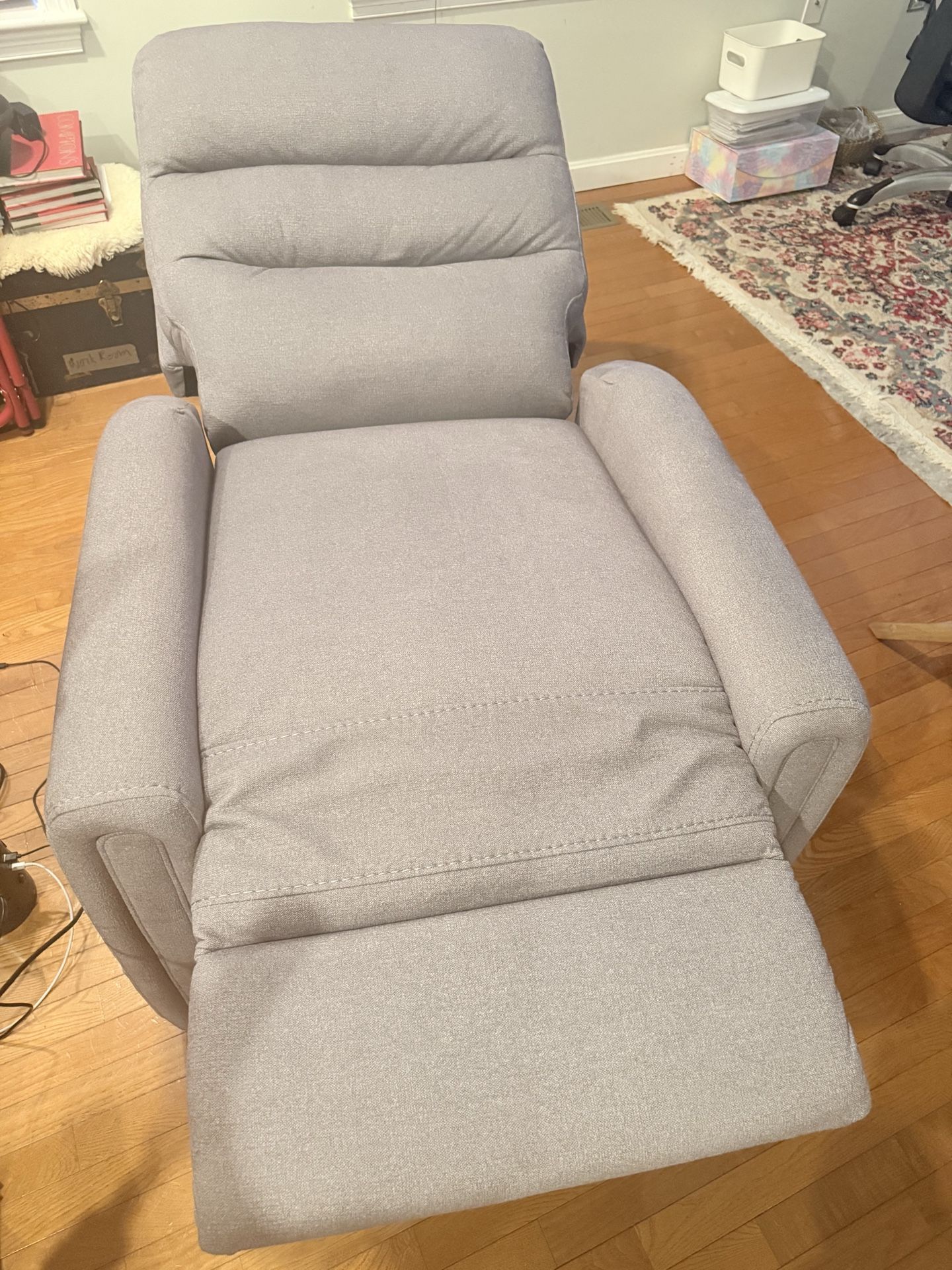 Excellent condition. Great for anyone who needs assistance getting into a standing position. Provides heat and massage. Great recliner for relaxing, sleeping and just watching tv. Was only used for two weeks by elderly woman.