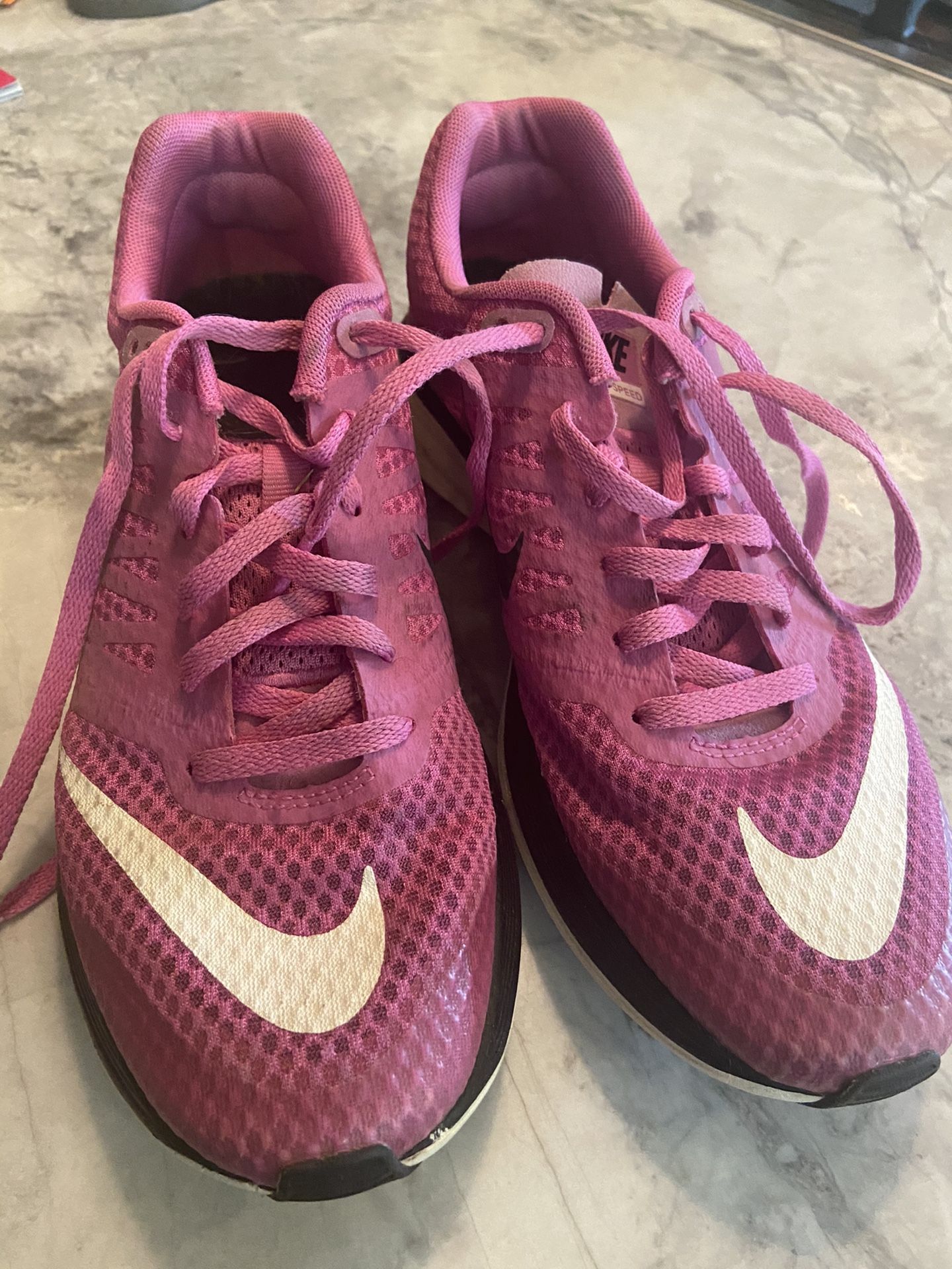 Like new women’s running shoes beautiful bright pink and white look great with almost anything. Size 7 1/2