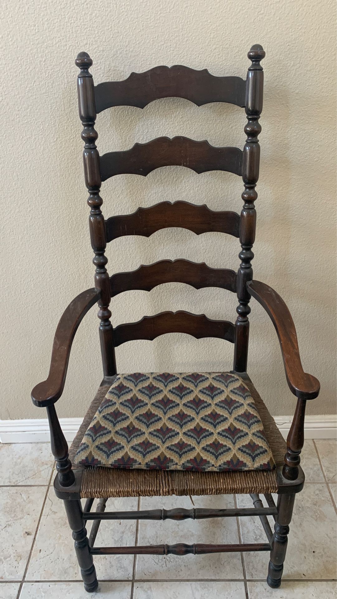 I believe the chair to be early to mid 1800’s solid oak straw arm chair.