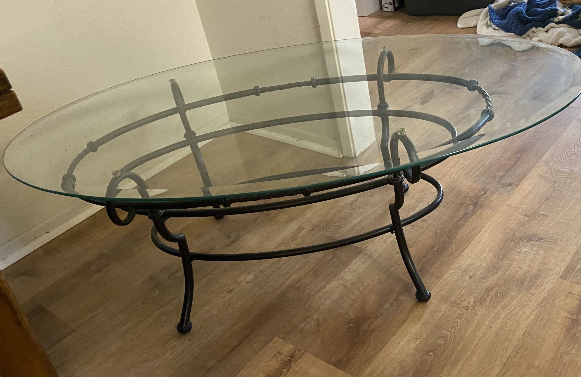 28 by 48 inches Base is metal but hollow so it is easy to move around. No chips or dents.