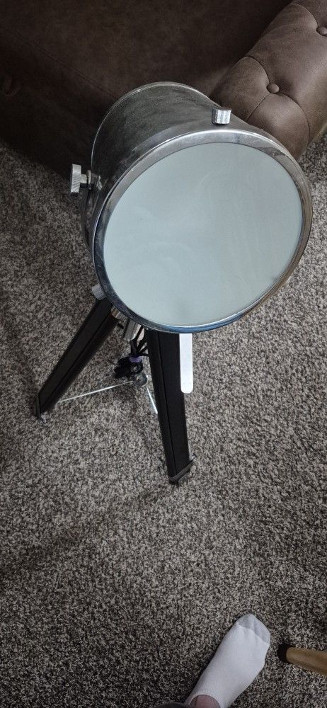 This is a Faux Classic Hollywood Film Light. It has a foot switch to turn it on or off. The light is interchangeable. The light setup is great for diffused lighting. The current bulb is a Lite Source LT-13SP 13w 2700K. If you have any questions, feel free to reach out. And please check out my other listings.
