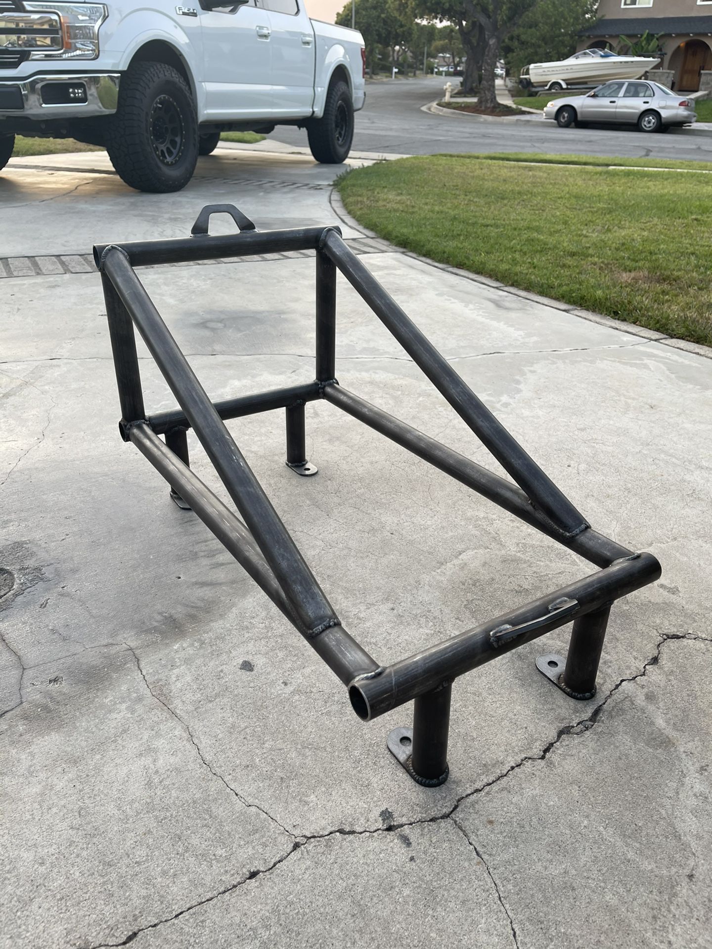 Universal spare tire carrier Will work on any truck that has bed you can drill through Fits 33s-35s Model that fits 37s also available Made to order Offered in raw or powered coated black prices vary Will include hardware to bolt to bed Will not include strap 500 raw 600 powder coated black Message me with any questions about the tire carrier