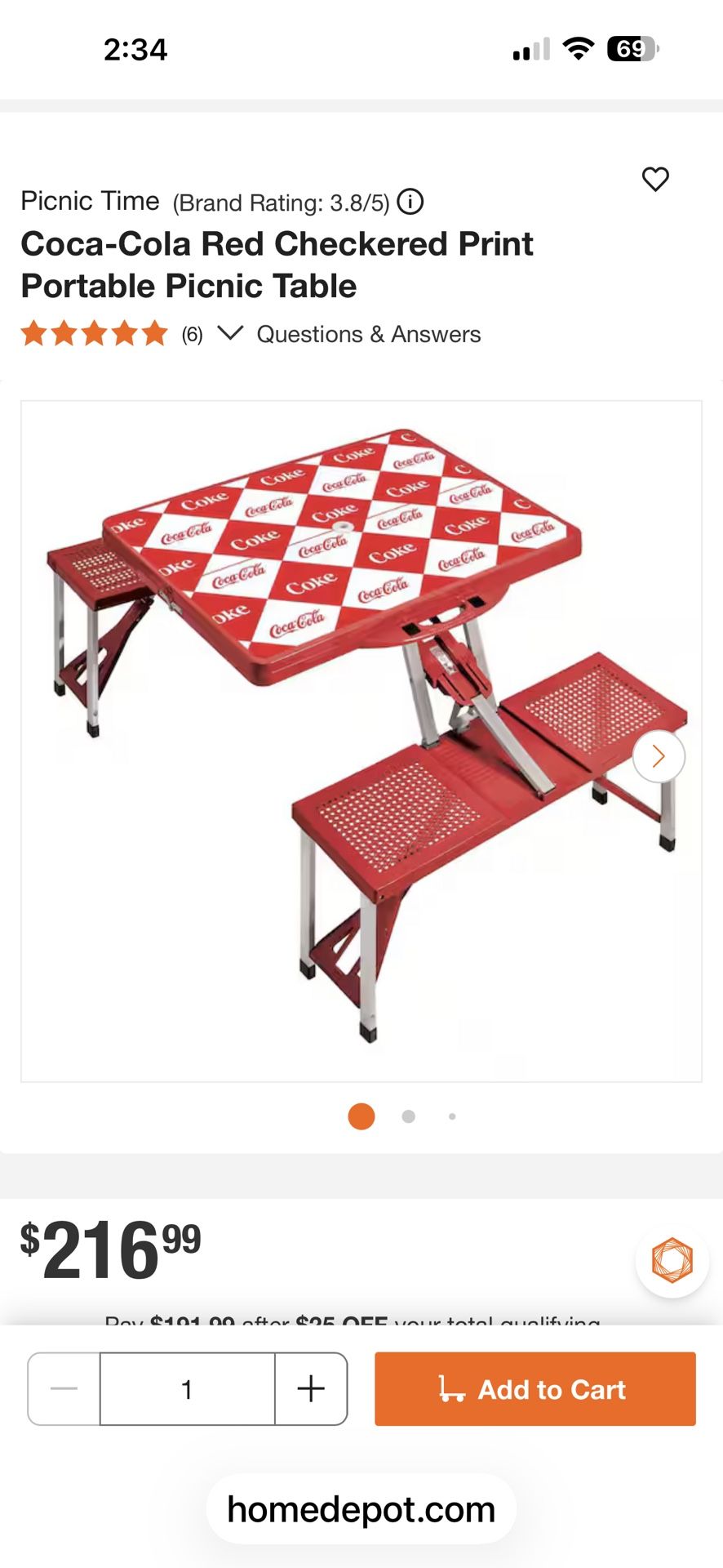 Case Folding checkered Coca-Cola Picnic Table Brand New!