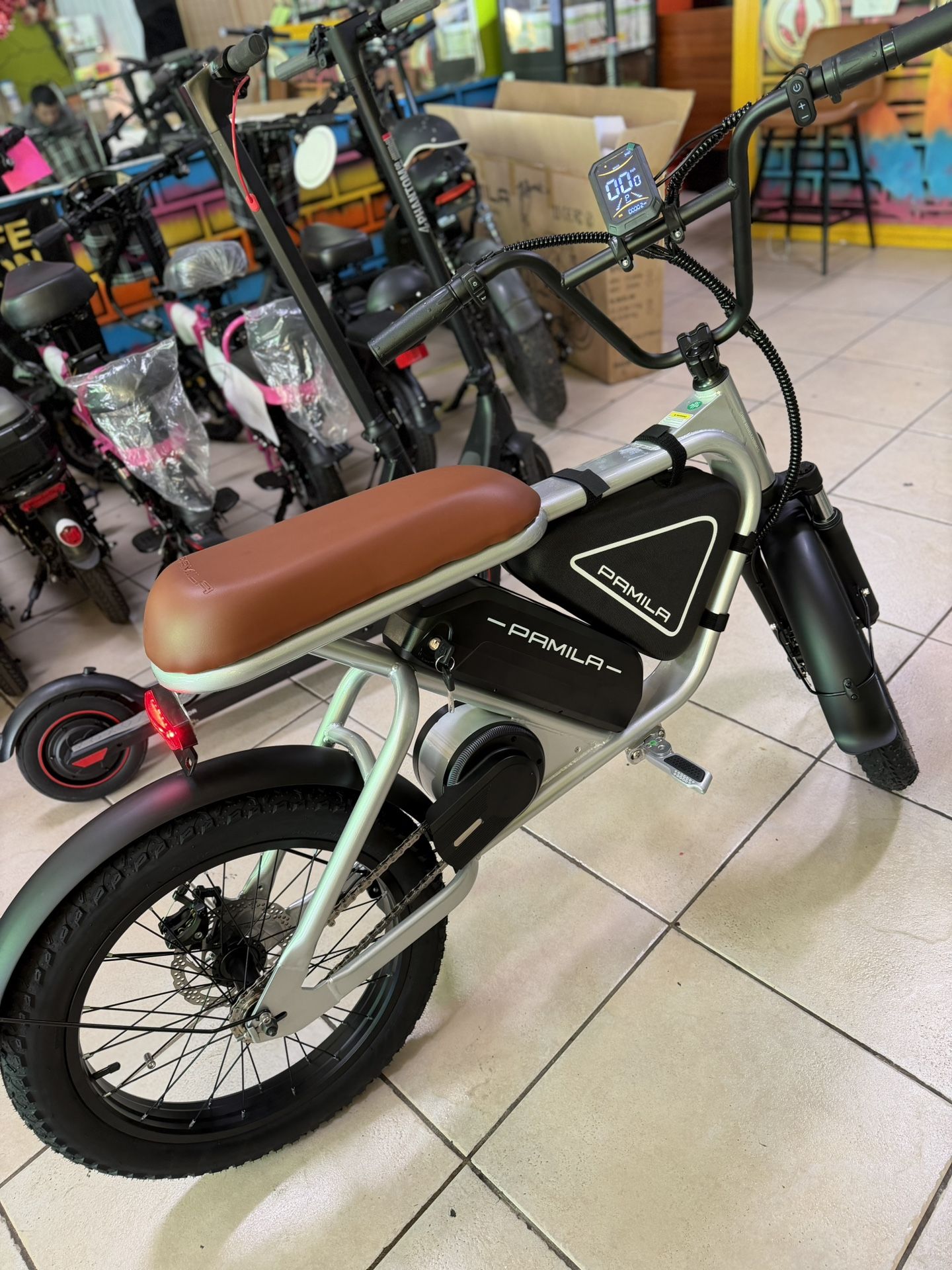 Pamela E3 Gray 20-Inch Adult Motorized Dirt Bikes,1000W Led Mid-Mounted Motor,Puncture-Resistant UL2849 Wide Tires,48V15.6Ah Battery. Speed 25miles per hour Range 30-40miles