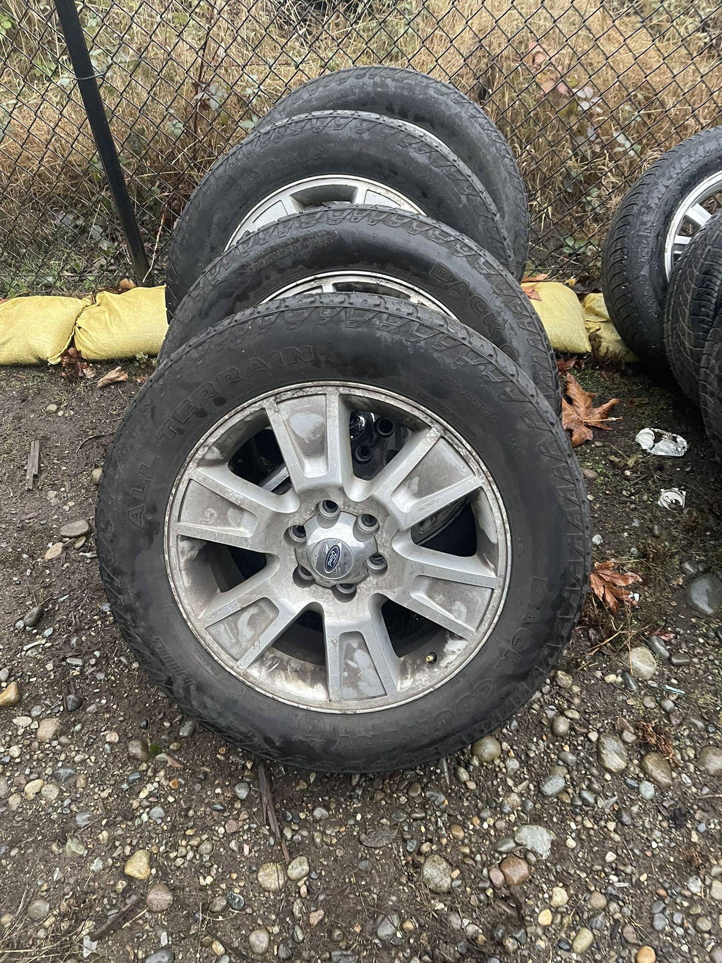 Set of 4 Back Country All Terrain 32’s. Good tread left. Rims fit Ford F-150. 250.00