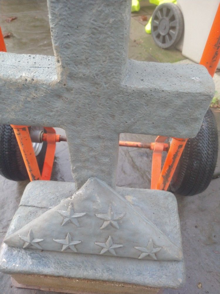 Very heavy allegiance cement cross . Approximately 24inches tall . Light grey color.yes available please pick up