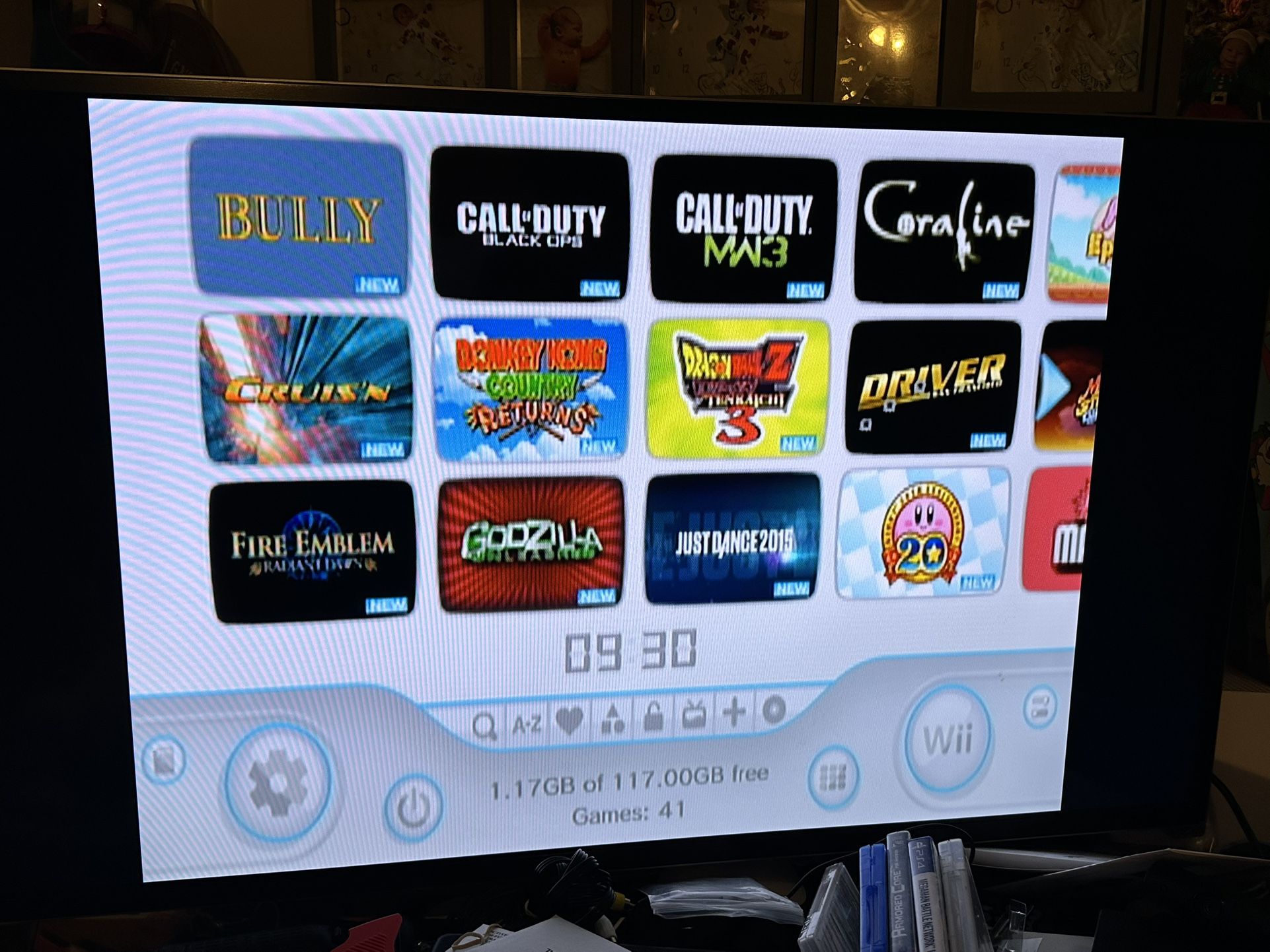 Nintendo wii gamecube compatible Rvl-001 usa Homebrew modded with 117GB memory. Over 2000 games installed on this console. Includes: Over 500 NES games, over 700 SNES games, over 400 Gameboy games, over 400 Gameboy Color games, 20 banger Gameboy Advance games, and 41 games from the Wil, 6 Gamecube games. Console, sensor bar, dock, power cord, av cable, remote control, nunchuck, and SD card. Pokemon, Zelda, Kirby , Godzilla, Super Mario, Wii sports, Luigi , smash bros , silent hill , Metabots, Spiderman, sonic, shadow, digimon, xmen, dragonball z, nba, madden, street fighter, Castlevania, teenage mutant ninja turtles, cod , bully , metroid, star wars, resident evil, Gb, gbc, gba