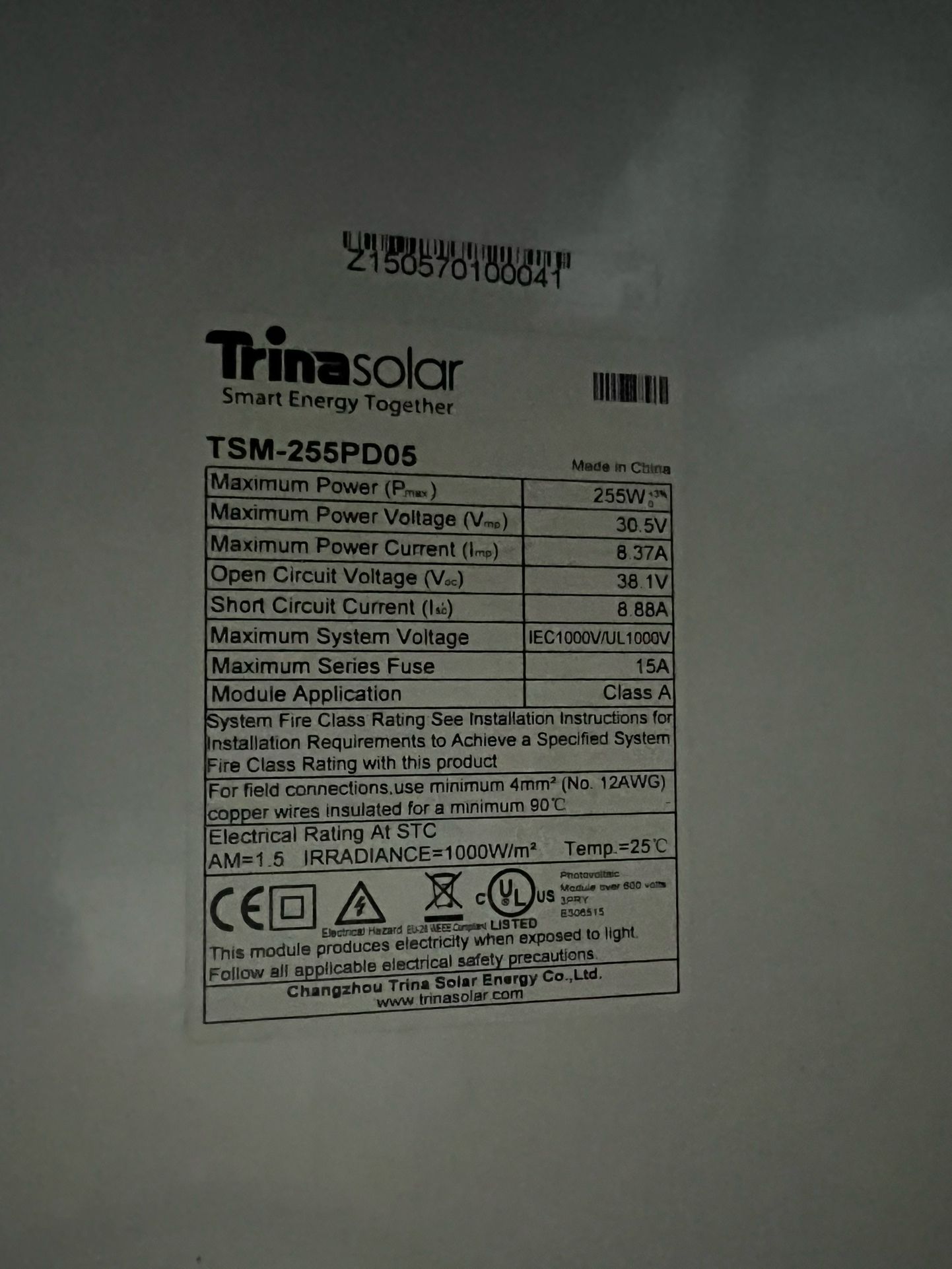 3 Trina Solar Panels available. Details in photo. In good condition.