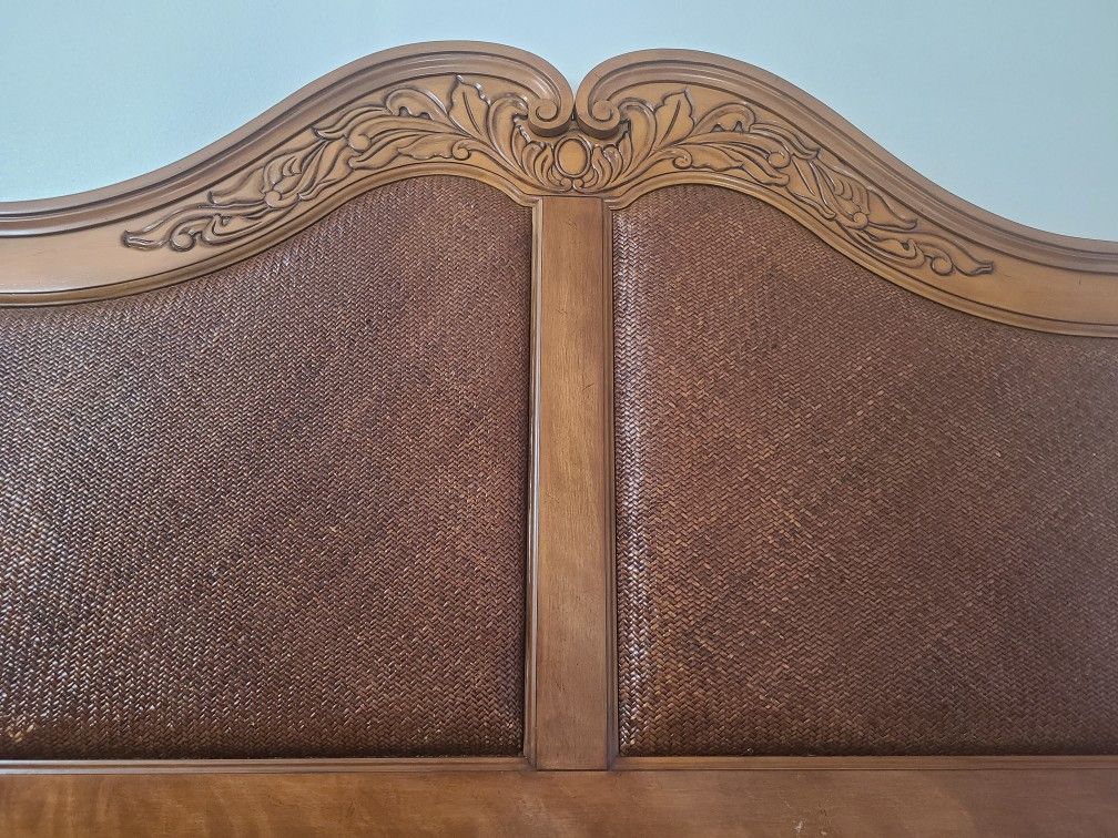 Broyhill. Queen Headboard which Is Carved Fancy And Woven Wood