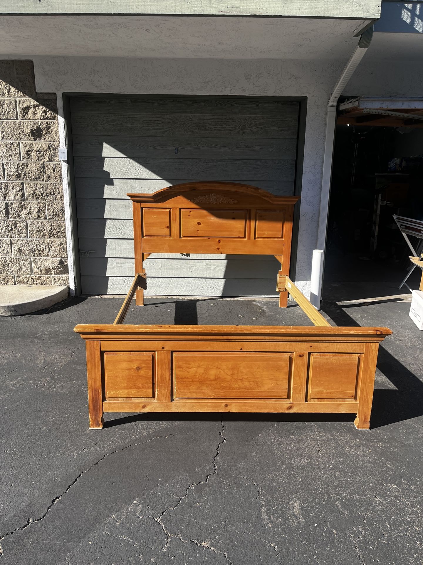 Vintage wooden queen bed frame. Comes as is. Sides are metal.