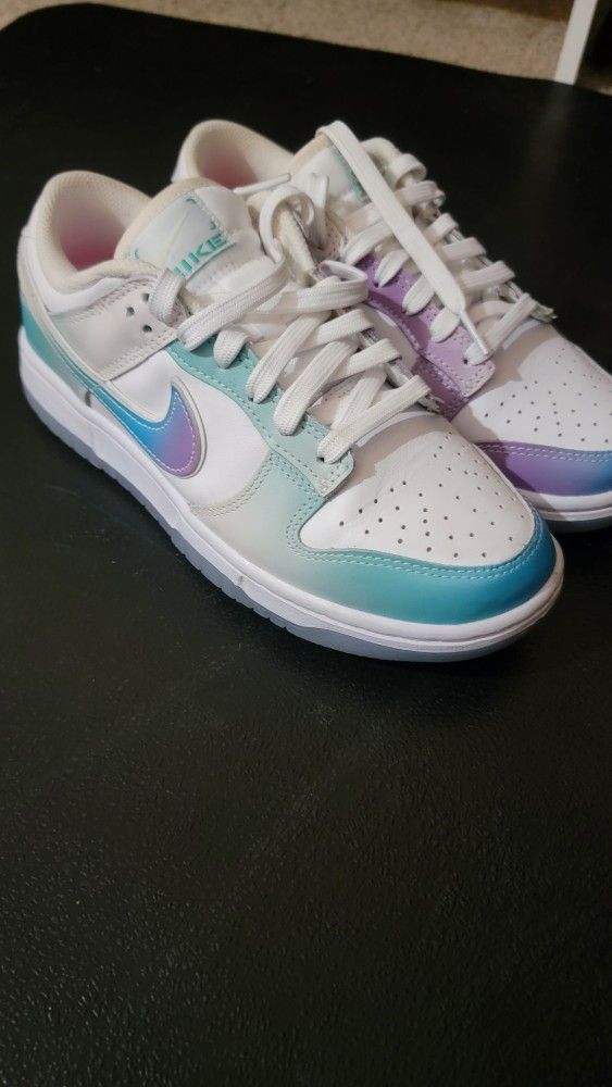 Nike Dunks size 6.5 in women's. Only worn twice and extremely well taken care of! These are RARE and LIMITED EDITION!!! They are absolutely gorgeous, but I don't go out enough to wear them to show them off, so I am hoping someone who are familiar with the Nike Dunks will happily snatch these up!!! I am in Gwinnett County and will meet at a local and safe place. I will not hold unless a DEPOSIT is made, I have had no-shows and shady people messaging me, so PLEASE DO NOT WASTE MY TIME!! I can send videos if you want to see them. But again, DO NOT WASTE MY TIME!! NEED TO SELL ASAP!!!!!
