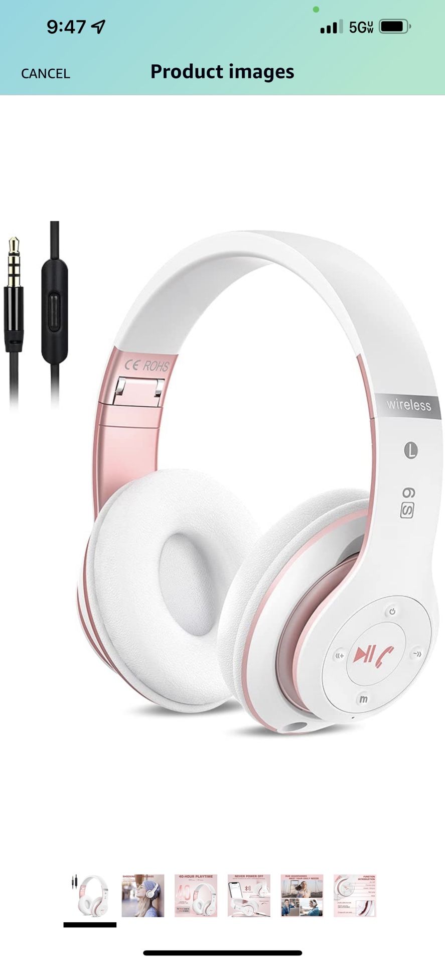 6S Wireless Bluetooth Headphones Over Ear, Hi-Fi Stereo Foldable Wireless Stereo Headsets Earbuds with Built-in Mic, Volume Control, FM for Phone/PC (