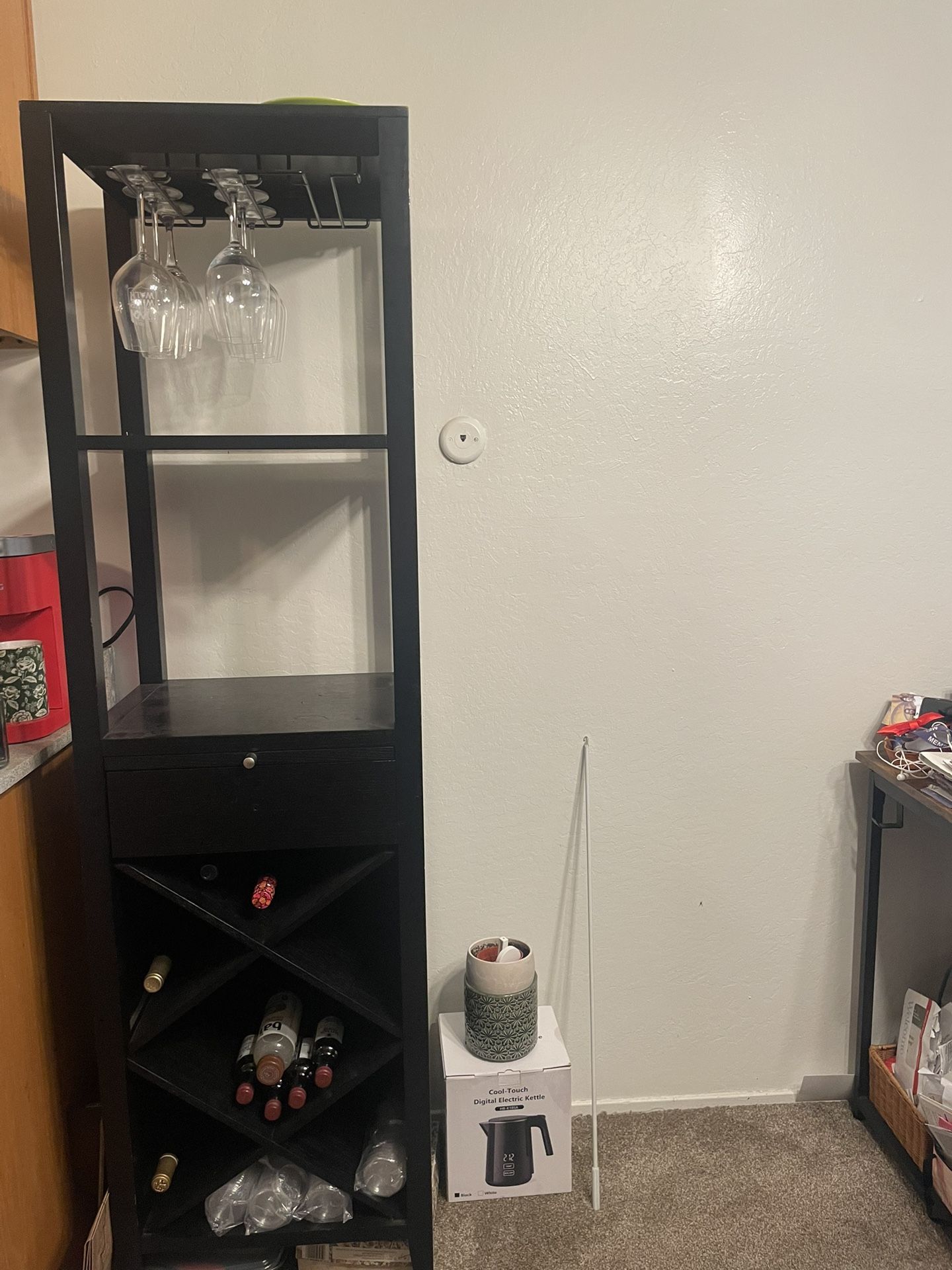 Wine Shelf. $30 OBO. With wine glasses included $45 (Wine not included.) Pick-Up Hayward/Castro Valley area. Measurements: 5’ft 8in X 1’ft 7in.