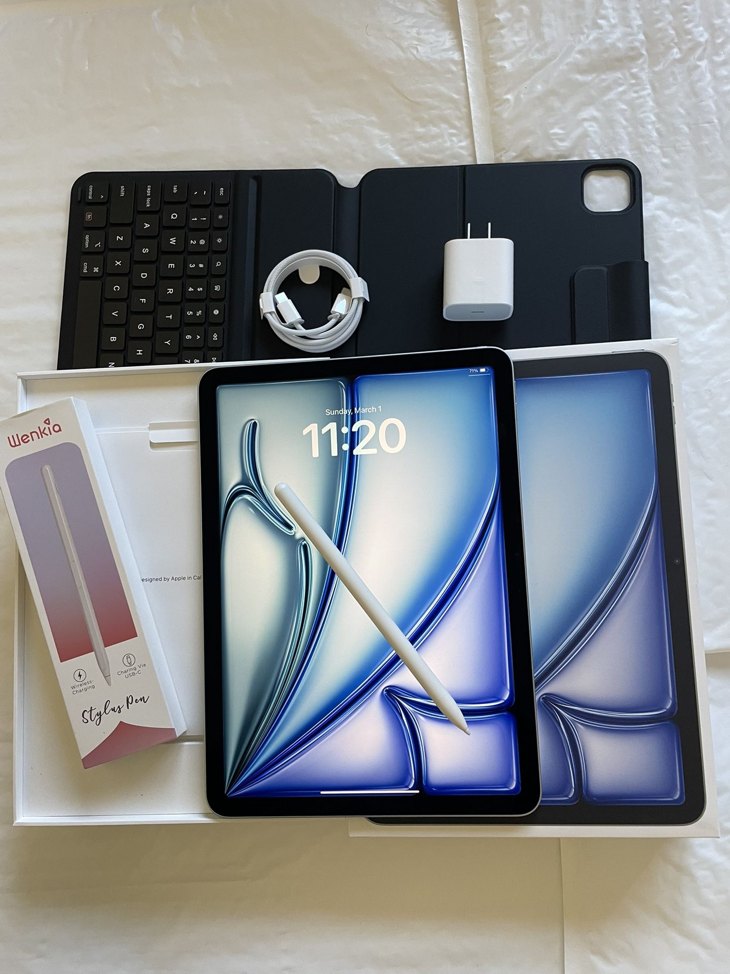 Apple IPad Air 11” ( M3 chip / 2025 Newest) 128GB with pen, keyboard case & Accessories (open box)