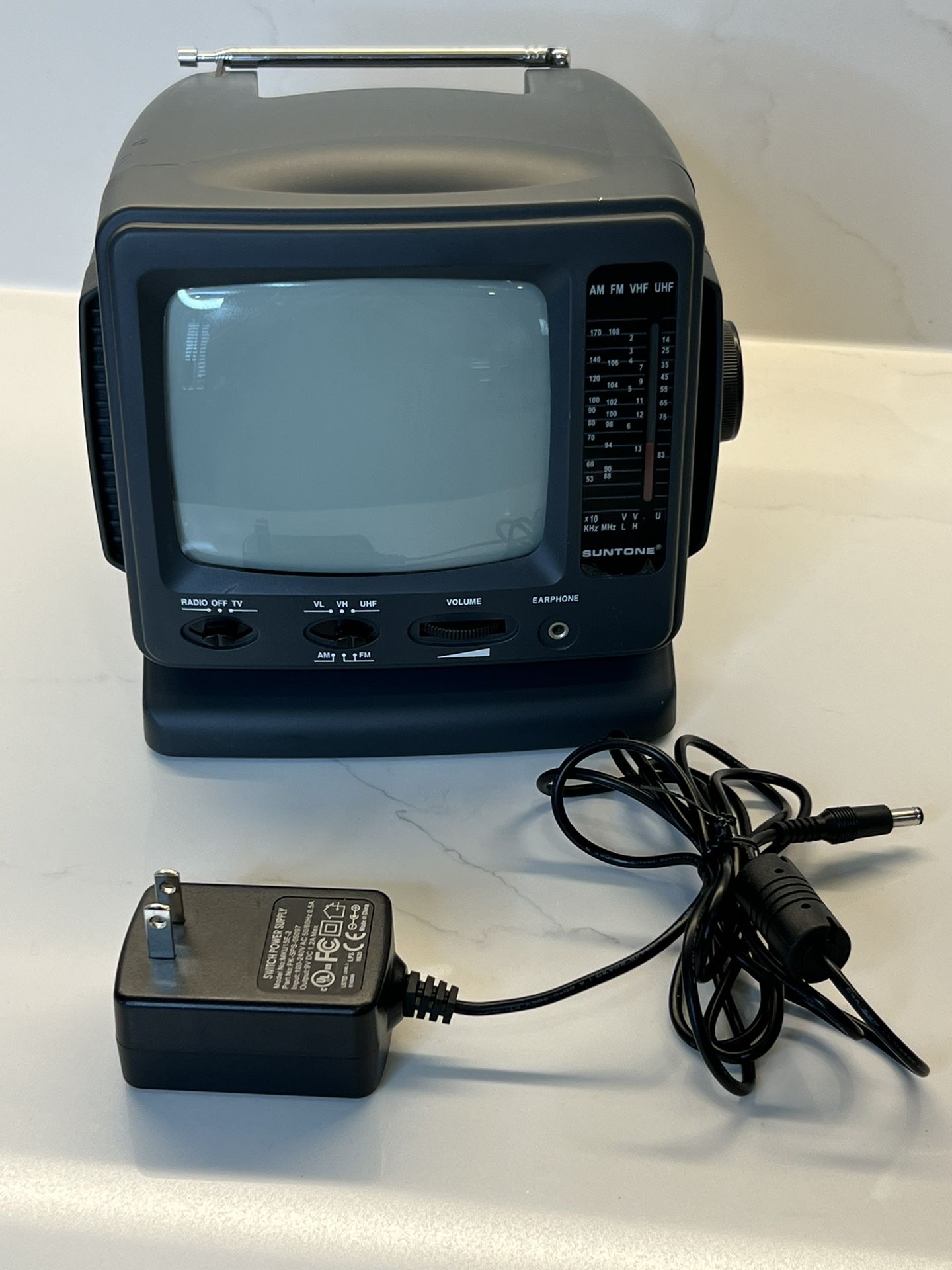 Vintage Suntone Elec1900 5" Black and White TV Radio Receiver, Works