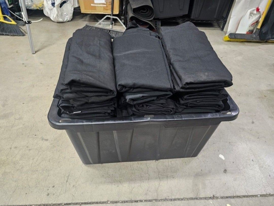 40+ black commercial linens perfect for events, parties, etc. Fits 6' rectangular tables $400 FIRM for all
