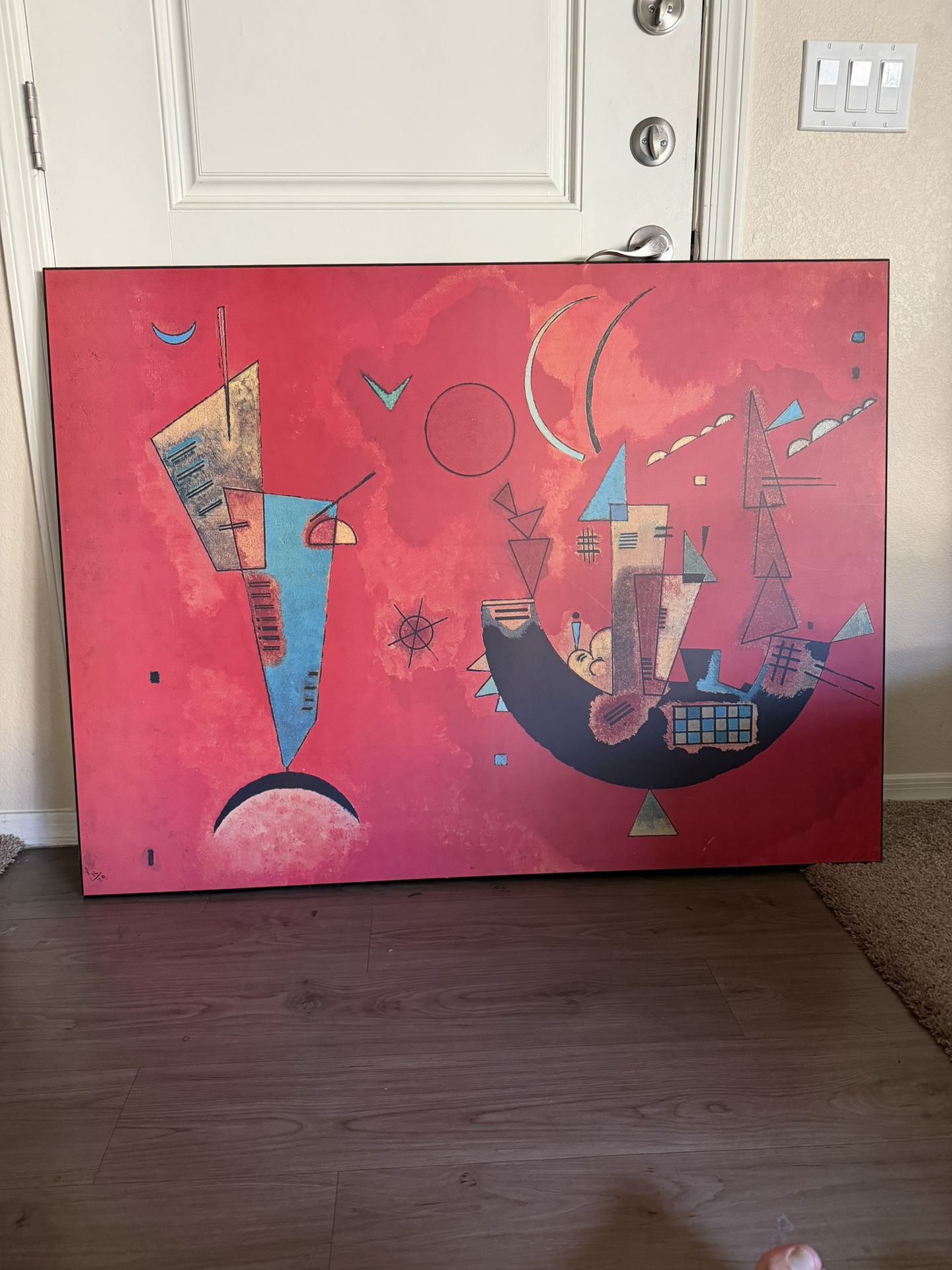 large framed print of the abstract painting "For and Against" (also known as "Mit und Gegen" or "With and Against") by the Russian artist Wassily Kandinsky.