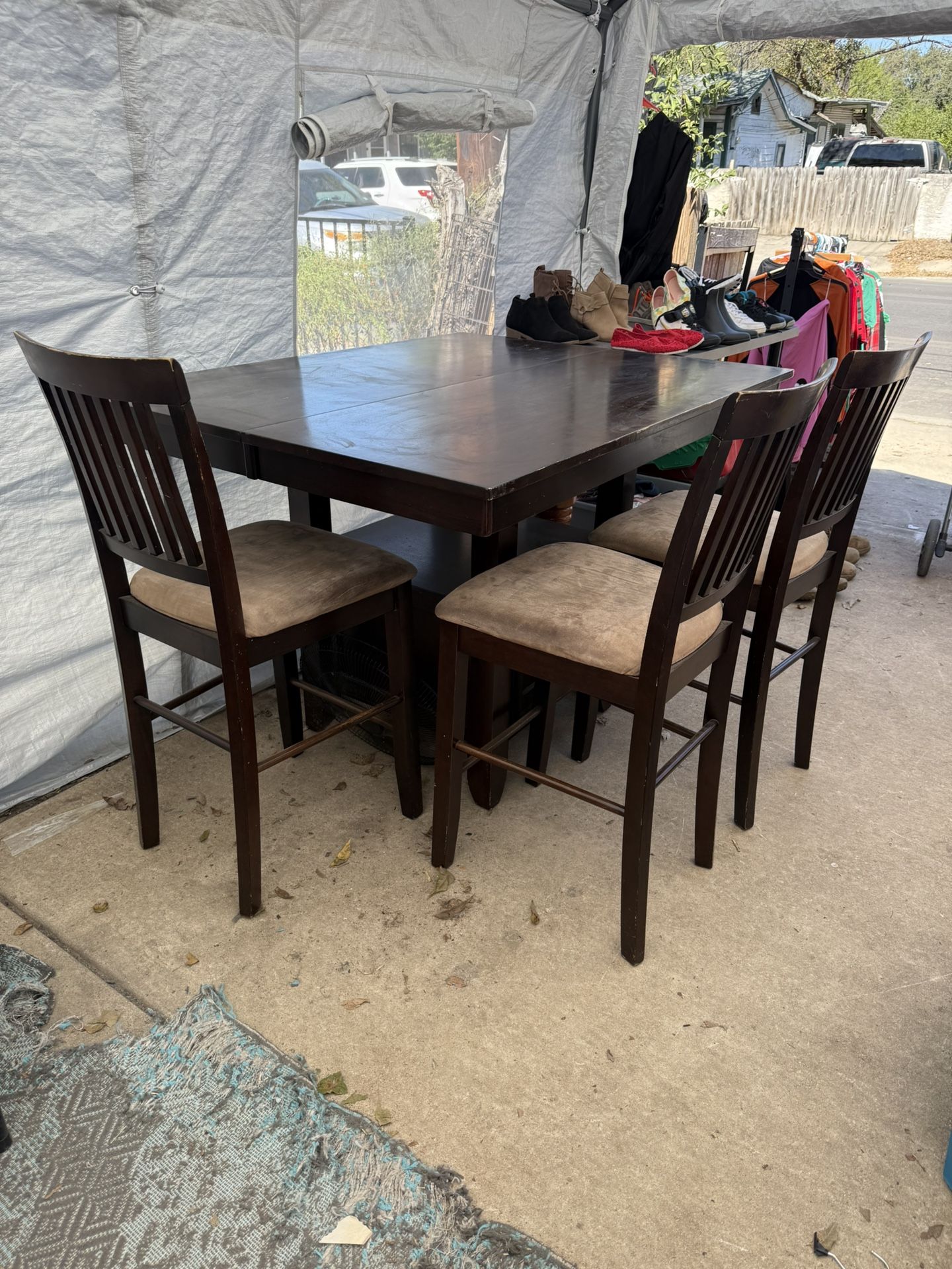 In good used condition, come with only 3 chairs pretty large table . Open to offers can drop off for asking price .