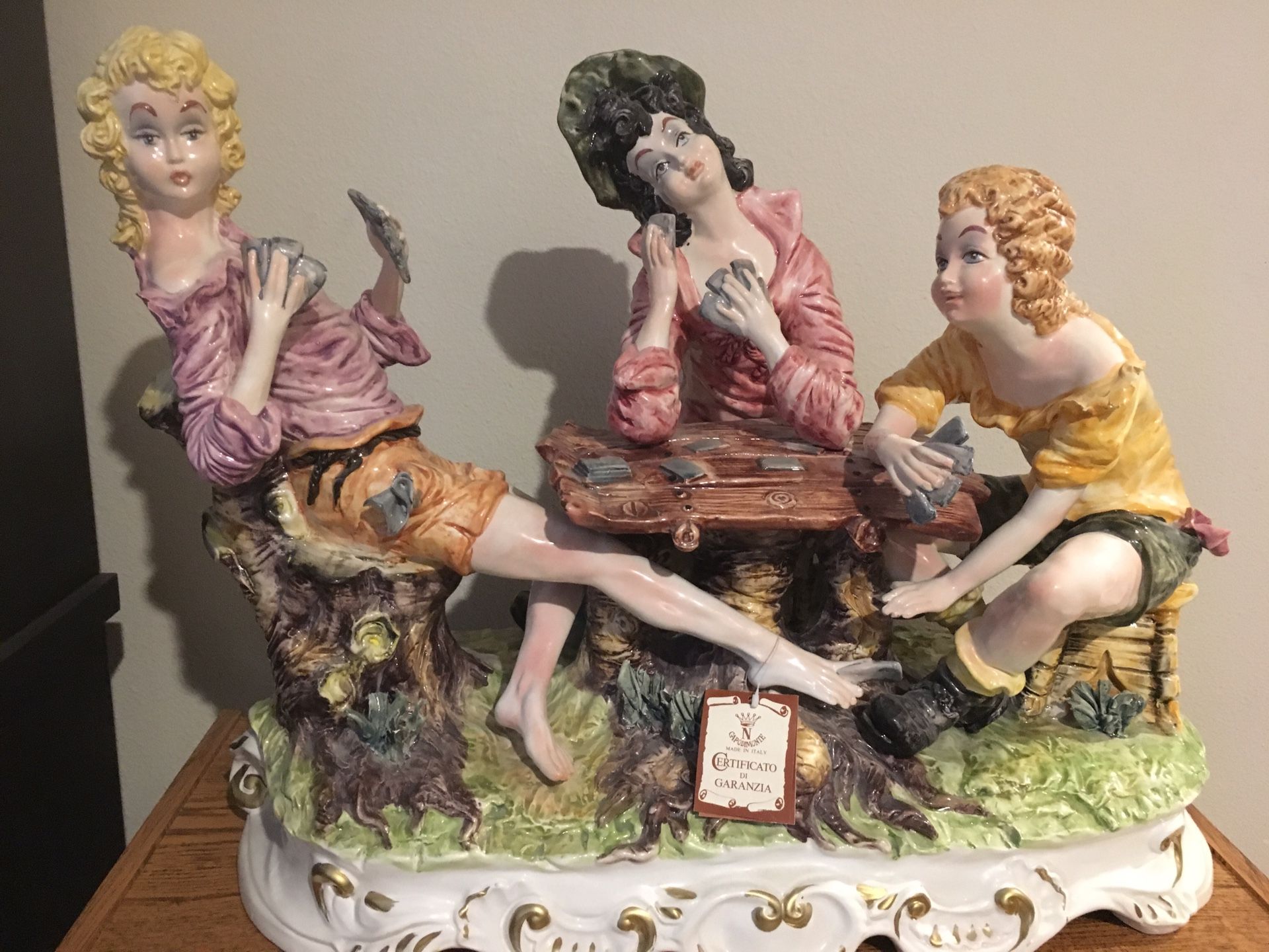 Large Capodimonte - 3 people playing cards. Excellent condition, just a bit dusty.