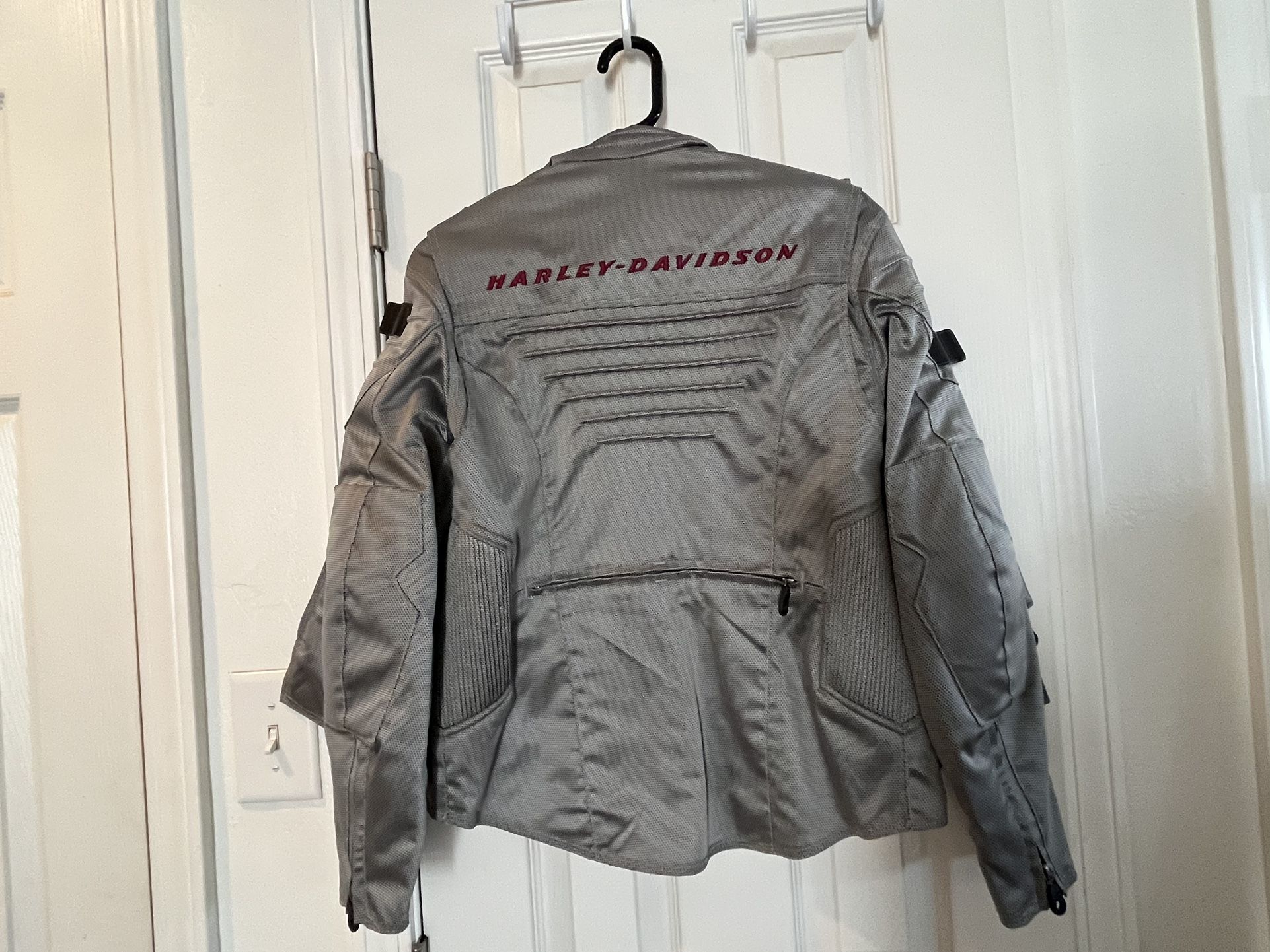 Quality material. Red accent lettering. Raised accent stitched stripes on back and shoulders. Accent patches on sides and elbows. Multiple pockets and zipper vents. Excellent condition—only worn a handful of times! Pick up only near Hageman and Old Farm Rd. Great condition.