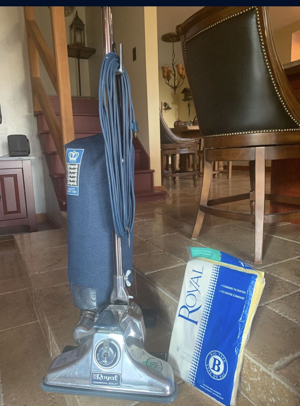 PERFECT FOR A CLEANING BUSINESS Commercial Vacuum. Royal is one of the best brands made for the cleaning industry. If you want a powerful vacuum cleaner this is the one. It comes with 8 brand new filter bags and 3 brand new belts. It works perfectly well. There is minor wear on the power cord shown in the photos. EBAY HAS THE SAME VACUUM FOR $149 AT $75 IT’S A STEAL