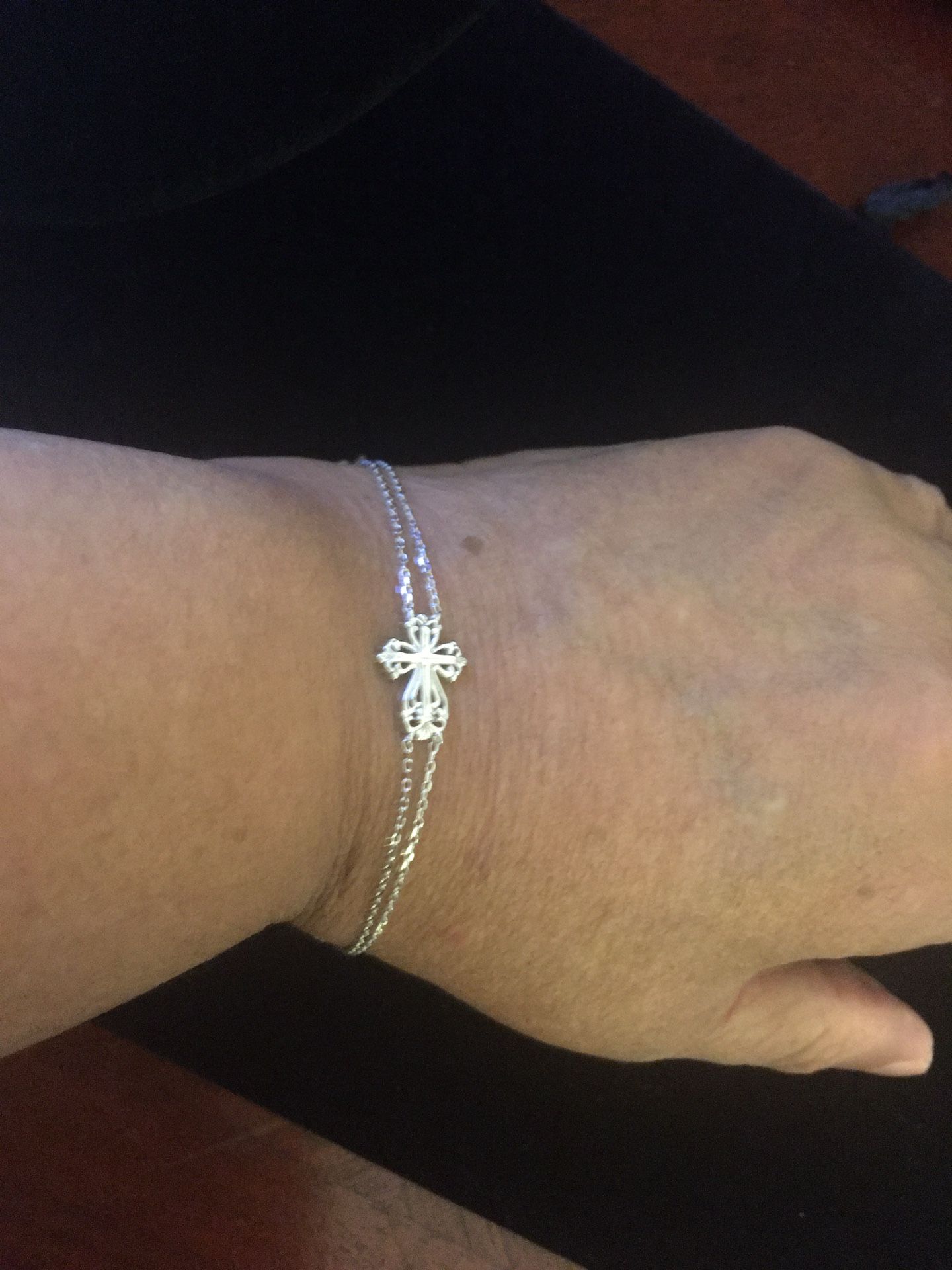 Sterling Silver Vintage Floral Cross Style Double Chain Bracelet ( 4- Available )