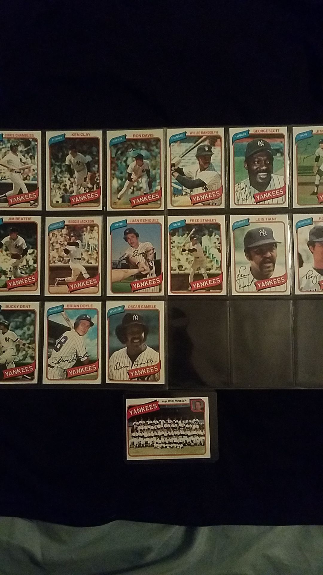 1980 Topps New York Yankees baseball team, every card in good condition.