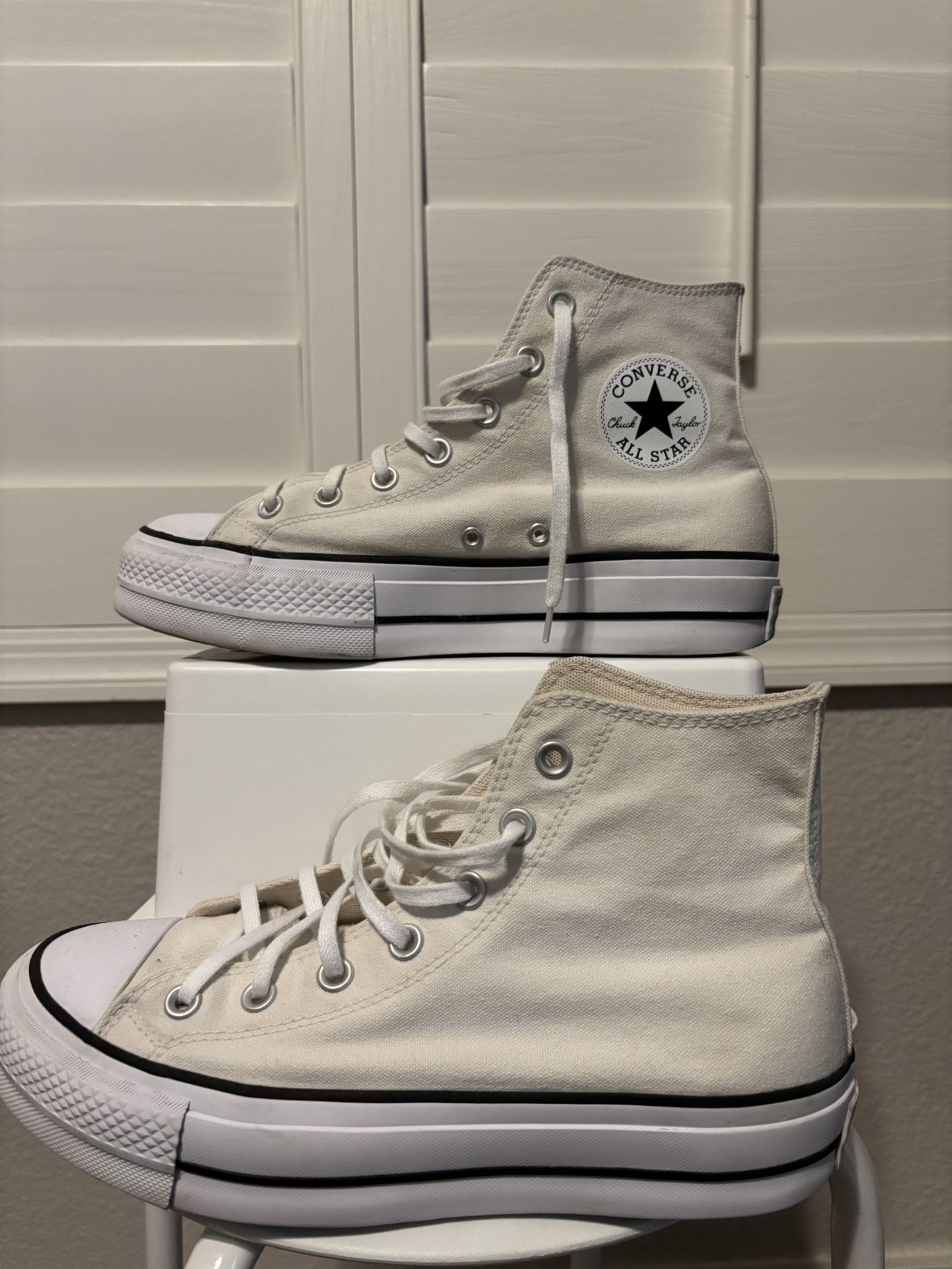 Off White Converse Hight Tops Platform Size 9 but fits a 9.5