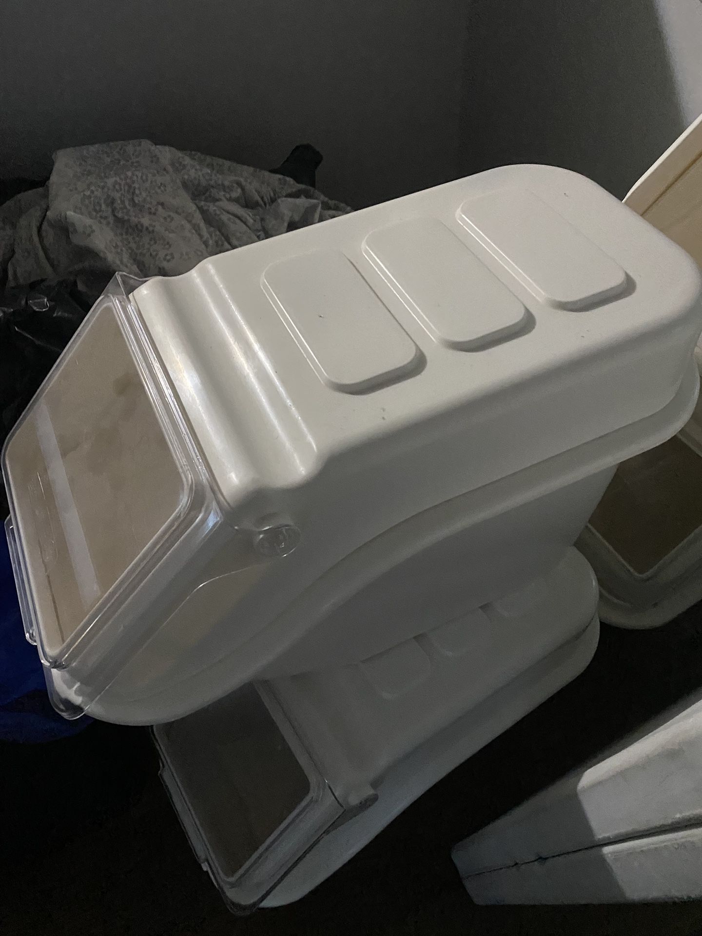 4 Baker's Mark 6.3 Gallon / 100 Cup Shelf Ingredient Bin with Flip Lid and Scoop
