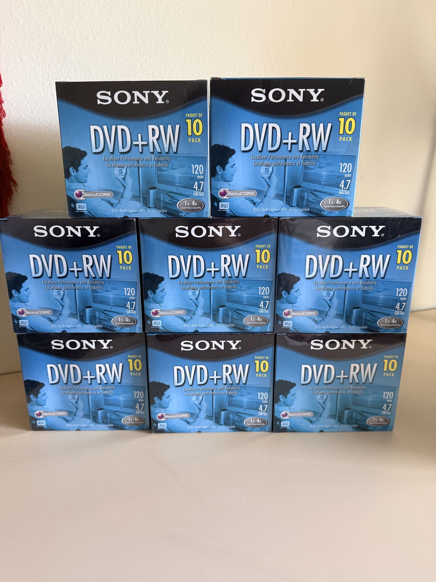 Sony DVD+RW 10 Pack - 4.7GB / 120 min - 1-16X Speed, excellent performance and reliability. Brand new in original packaging. Each DVD is in Clear plastic Case Price for Each Pack is $11.00 Eight (8) Packs are-left North Hollywood, 91602 Pick up and Cash only