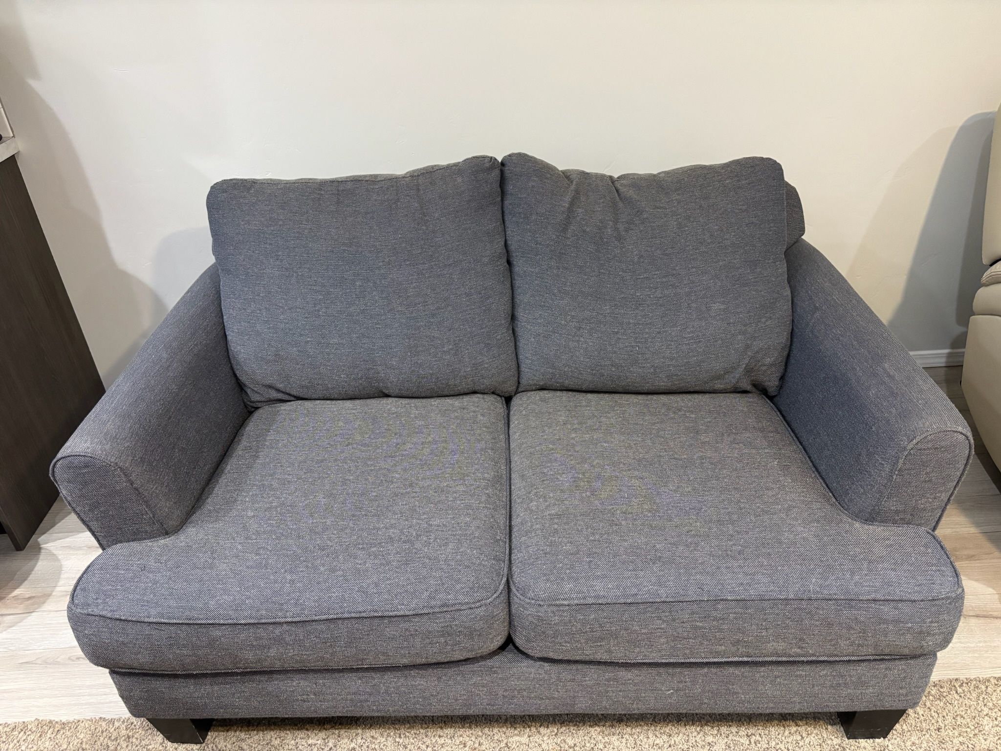 Comfortable gray sofa in good condition. Cushions are soft and supportive, and the frame is solid. Clean overall with only light, normal wear from use. No rips or major stains. Works great for a living room or apartment.