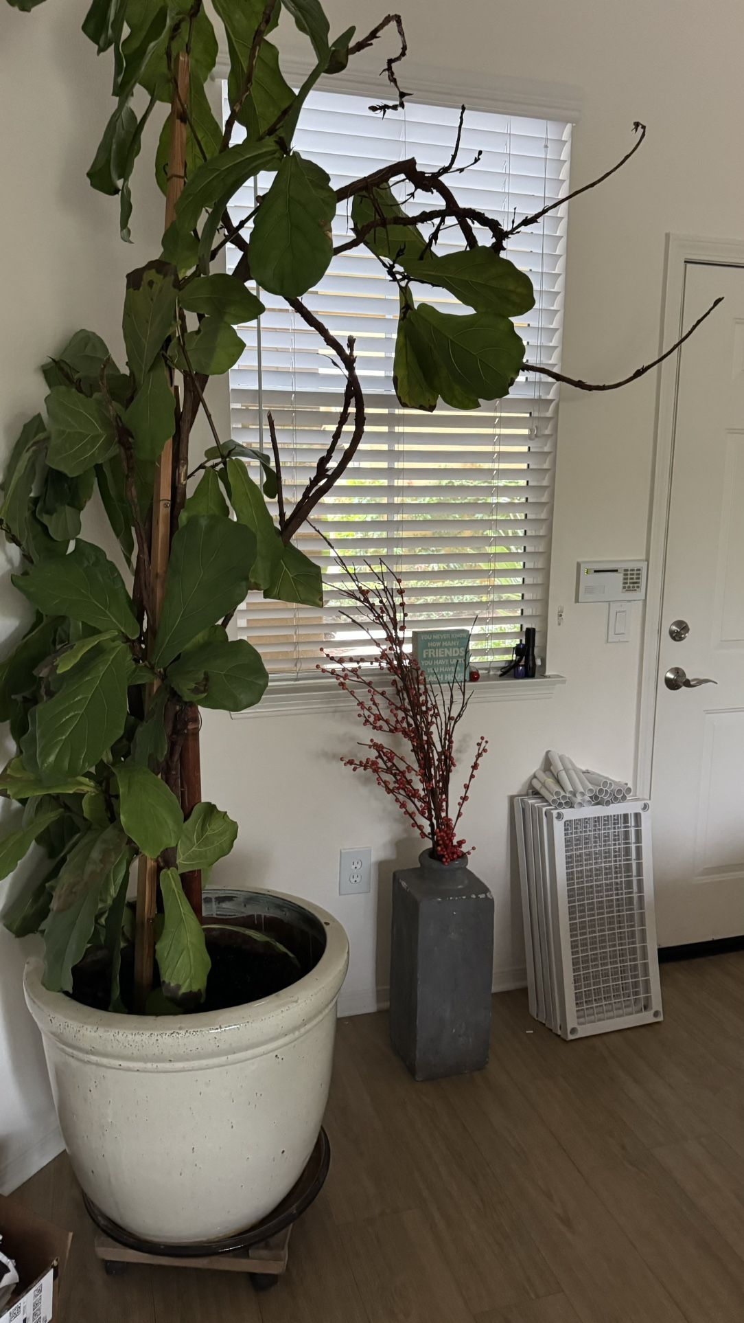 Large Fiddle Leaf Fig in White Ceramic Pot & Crate with Wheels