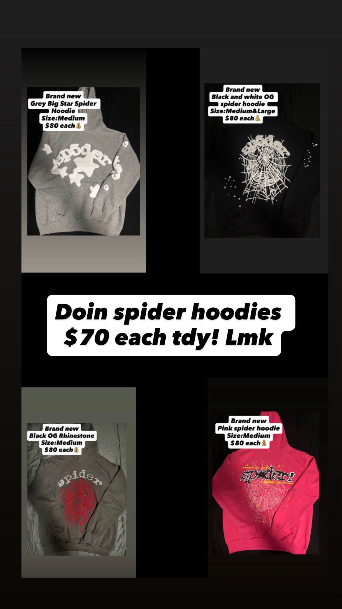 Doing Spider Hoodies $70 tdy! Lmk best quality u will get!