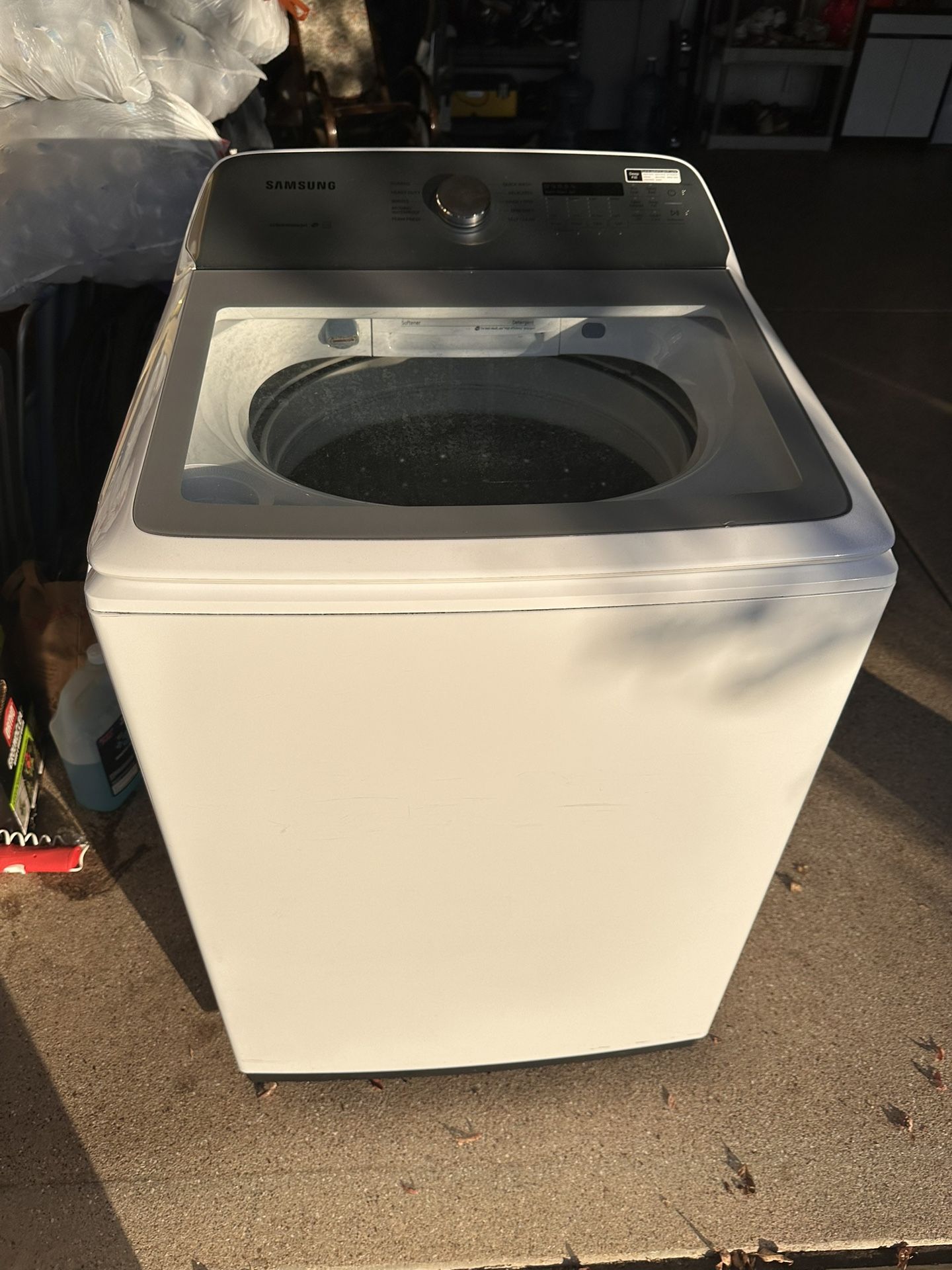 Samsung washing machine for sale. Works perfectly fine except with big loads it starts to bang so it’ll need to be evened out. Can do all loads, just need to make sure with bigger loads that everything is put evenly along the sides or else it’ll start swinging too much towards the side. Everything else works perfectly fine.