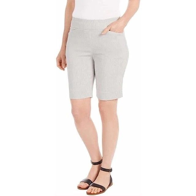 NWT Hilary Radley Ladies Stretch Pull On Bermuda Short Off White/Gray Size M