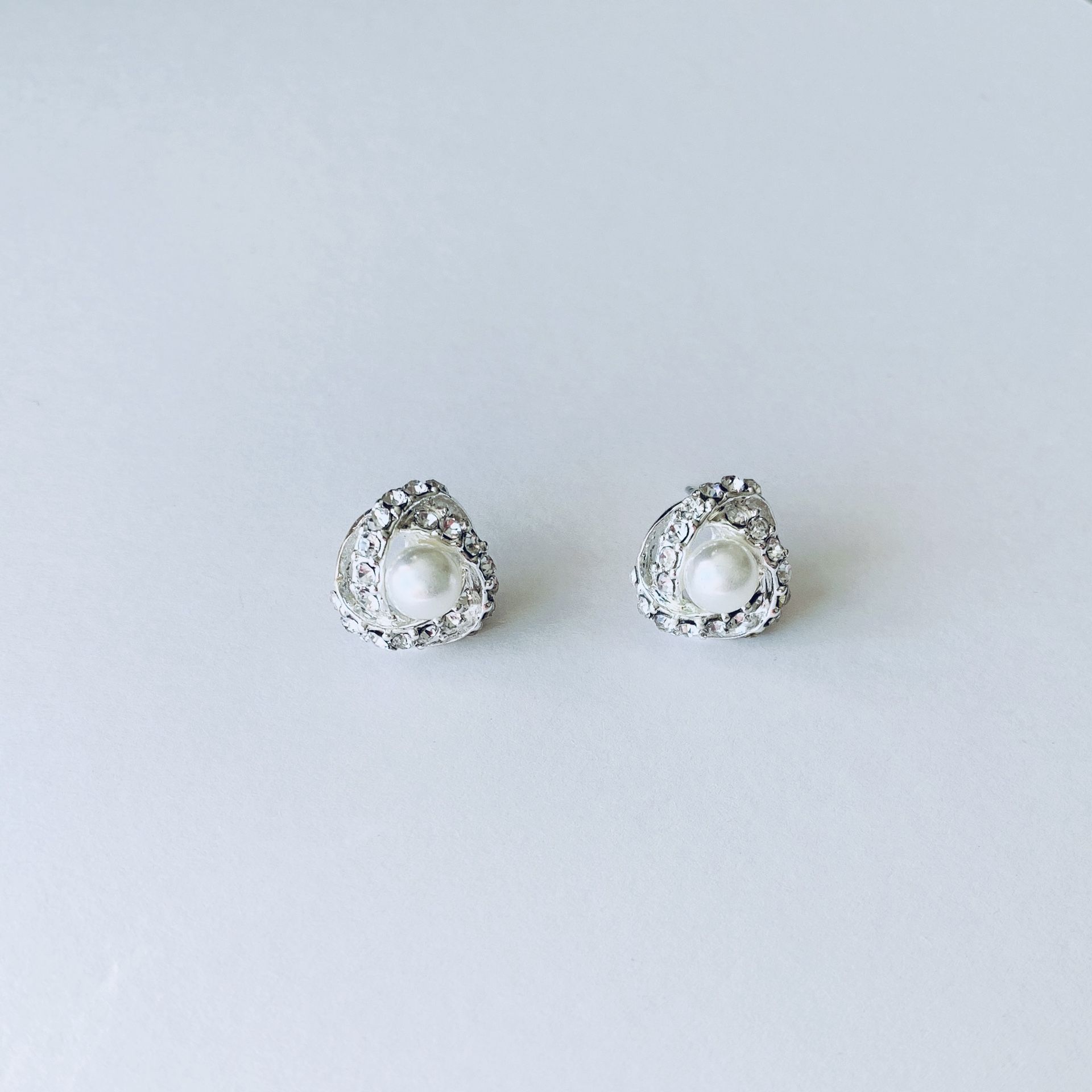Triangle Diamond With Pearl Stud Earrings