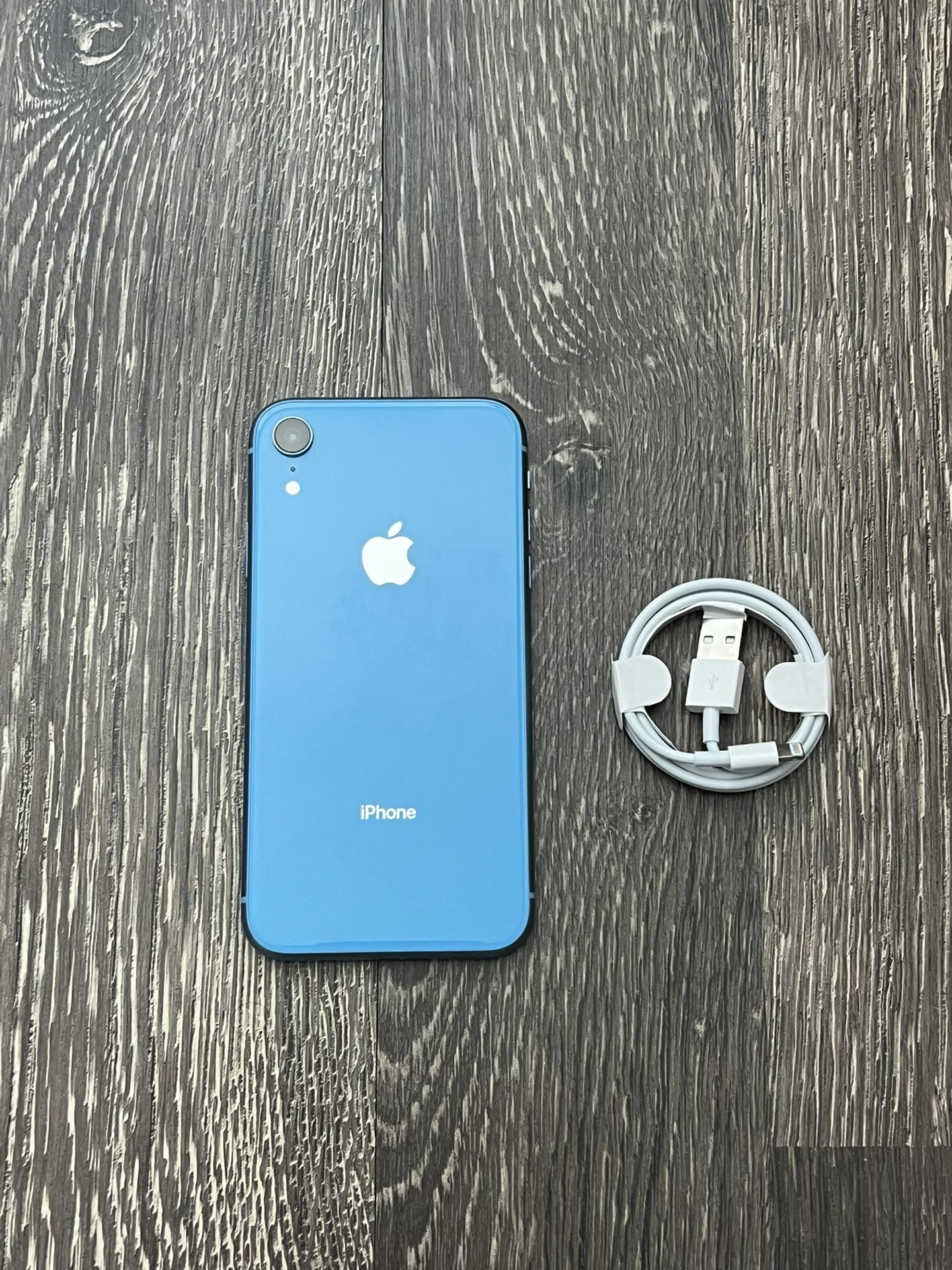 Apple iPhone XR 128gb Blue FACTORY UNLOCKED! SIM FREE. Works with ANY Carrier. This iPhone is NOT iCloud locked rand has a clean IMEI ready for activation. Comes with new Lightning cable.