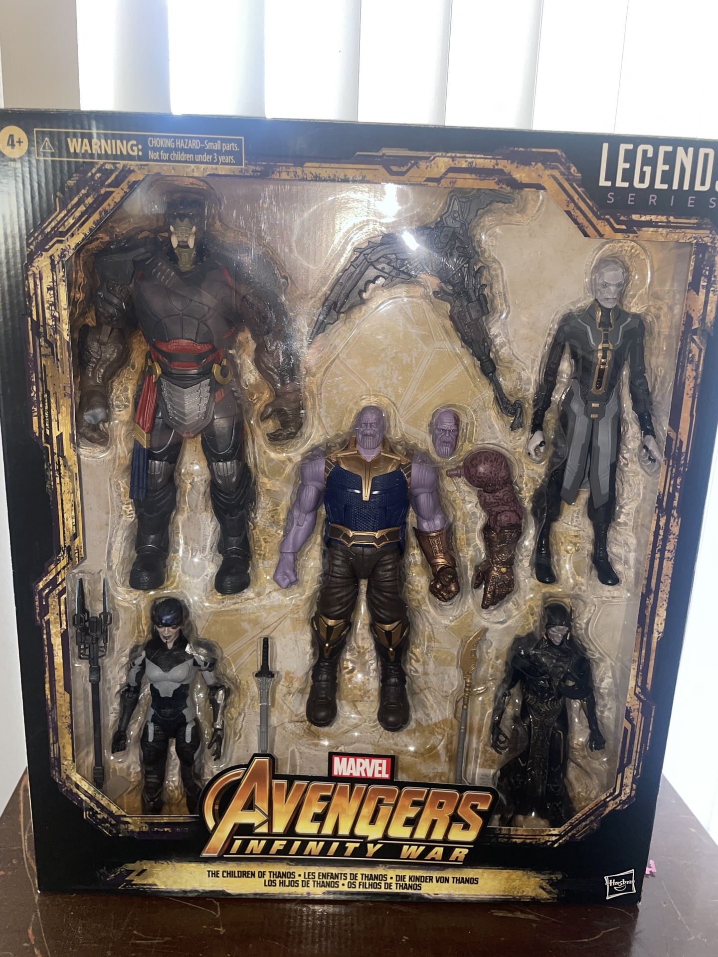 Opened. Only two figures were removed for display only. Amazon exclusive children of Thanos Marvel legends Thanos Children of Thanos The black order Infinity wars Endgame Captain America Spider-Man Iron Man Thor Hulk The Incredible Hulk DC comics DCU MCU McFarlane toys Hasbro