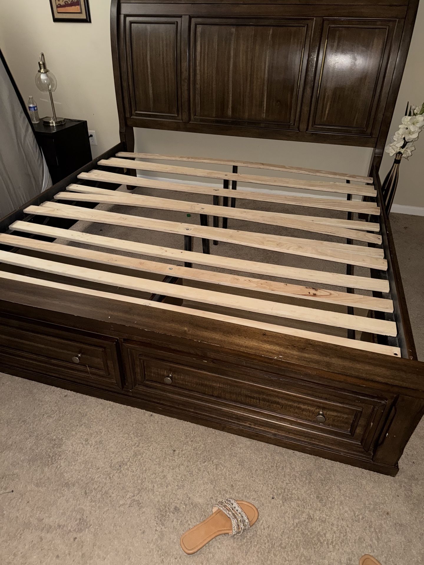 King size bed and dresser! In great condition. I’m moving into a smaller space and need it gone. Will need to come take it down and move it yourself. Sturdy wood. Will negotiate.